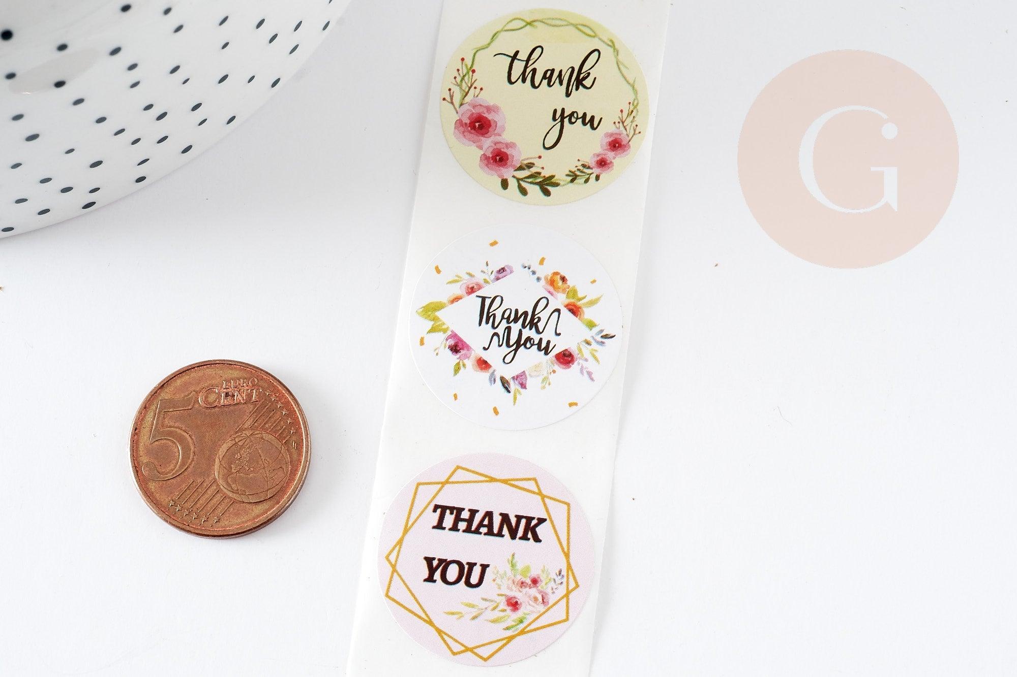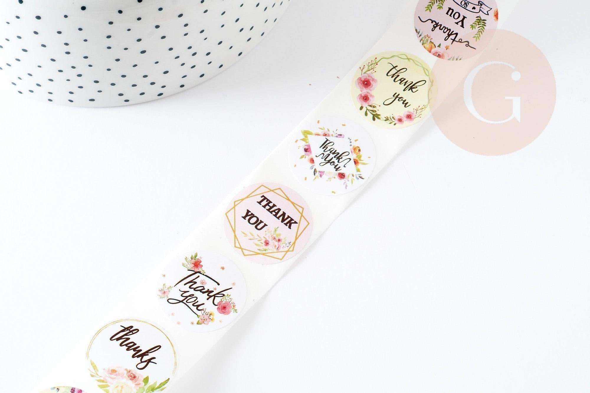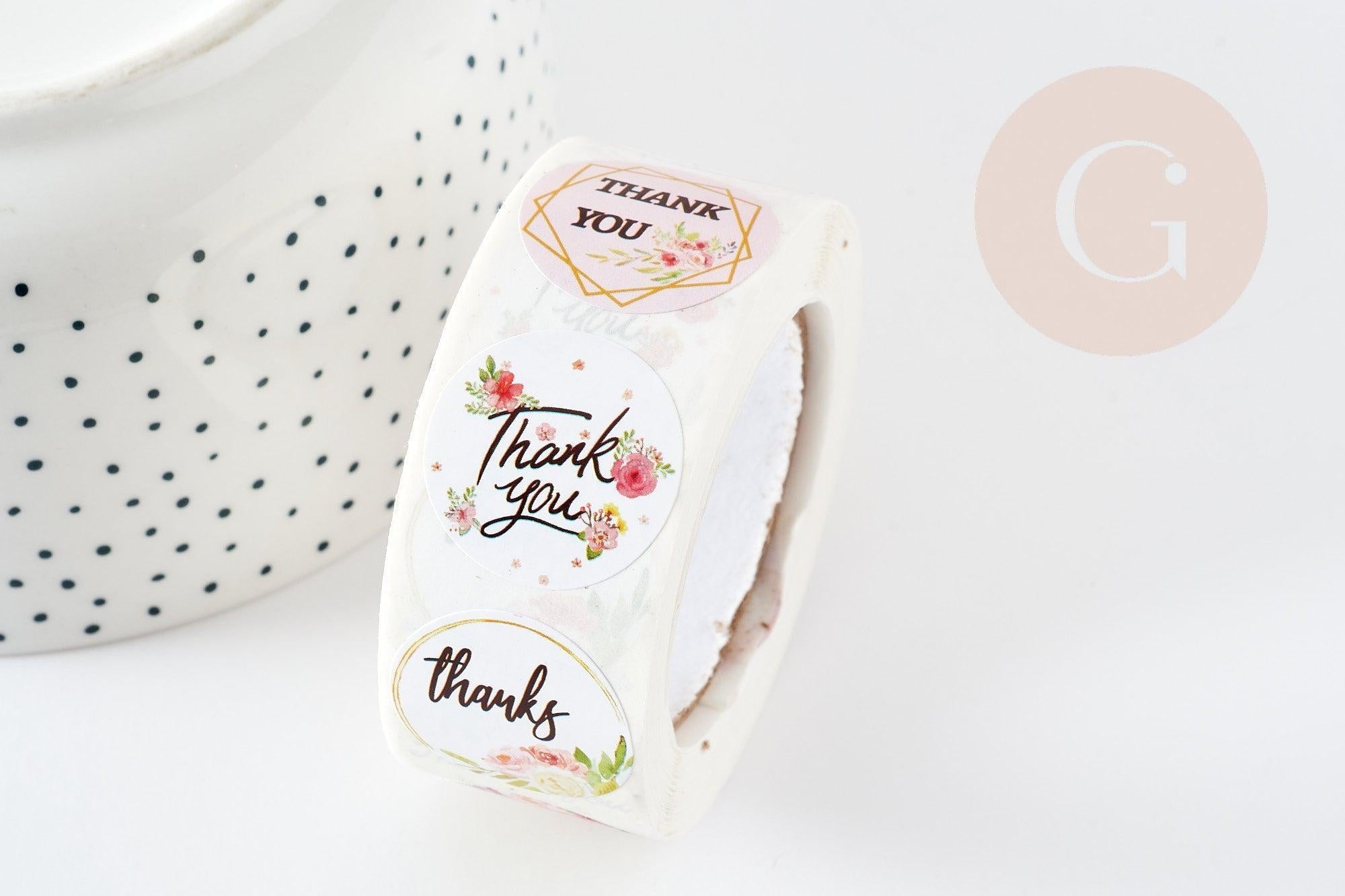 Craquez pour ces autocollants avec un adorable motif fleuri "THANK YOU" en guise de remerciement de commande ou pour la décoration de fêtes ou vos petits cadeaux de mariage.