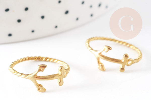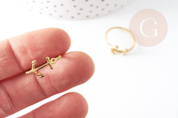 Bague ancre laiton brut, fournitures créatives,creation bijoux,bague laiton brut, bague large,bague ancre dorée, bague 16mm,support bague, les 2