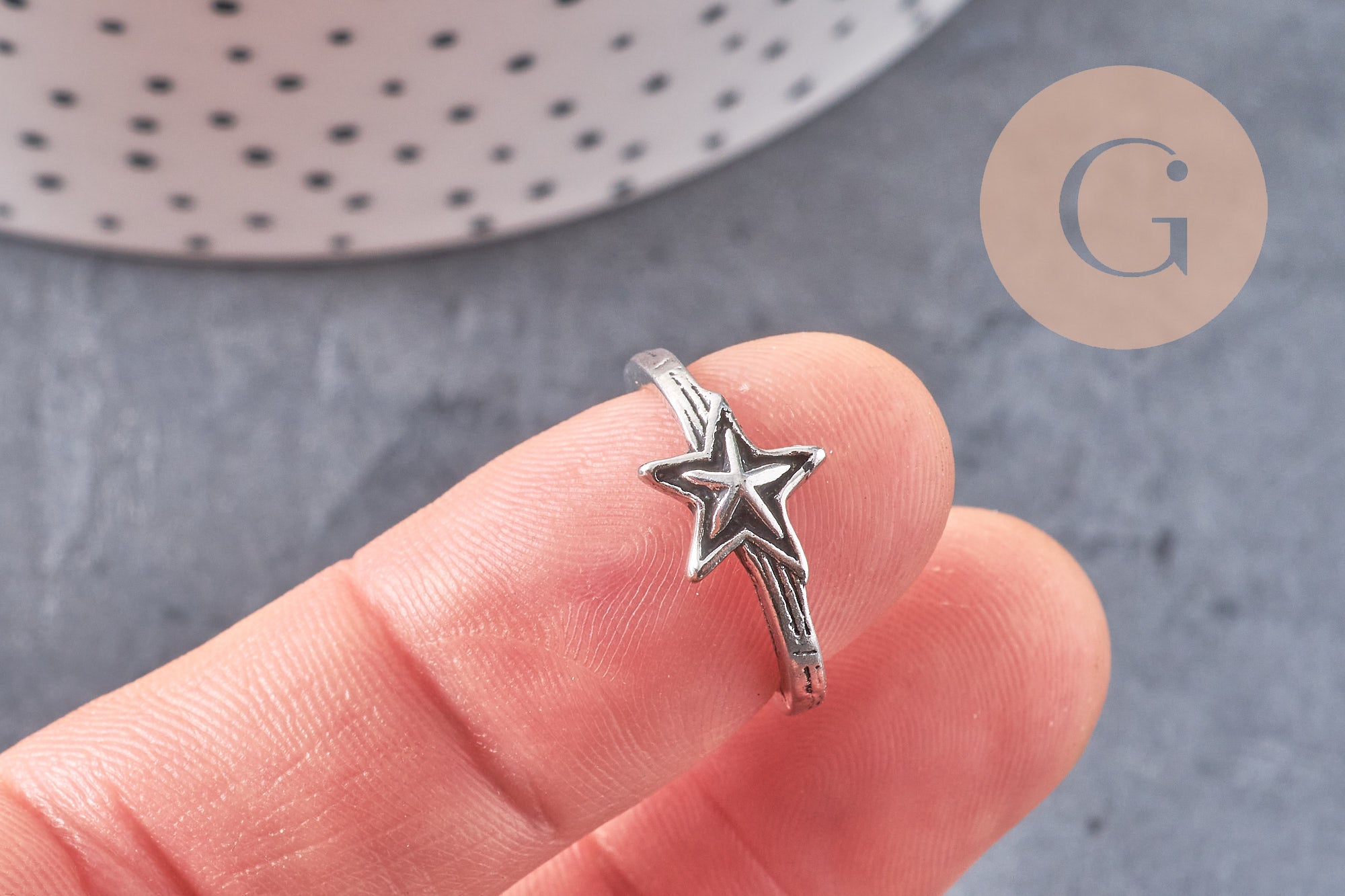Bague fine argenté étoile, creation bijoux,bijou femme, bijou minimaliste, support bague,bague femme, bague fine argent, bijou fin,16mm