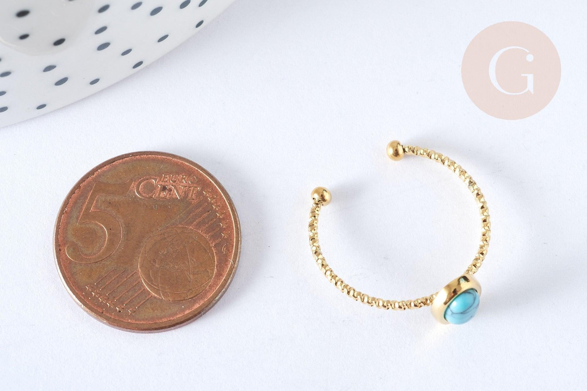 EP-Bague fine réglable pierre turquoise acier doré inoxydable Taille 54, x1 (G7029)