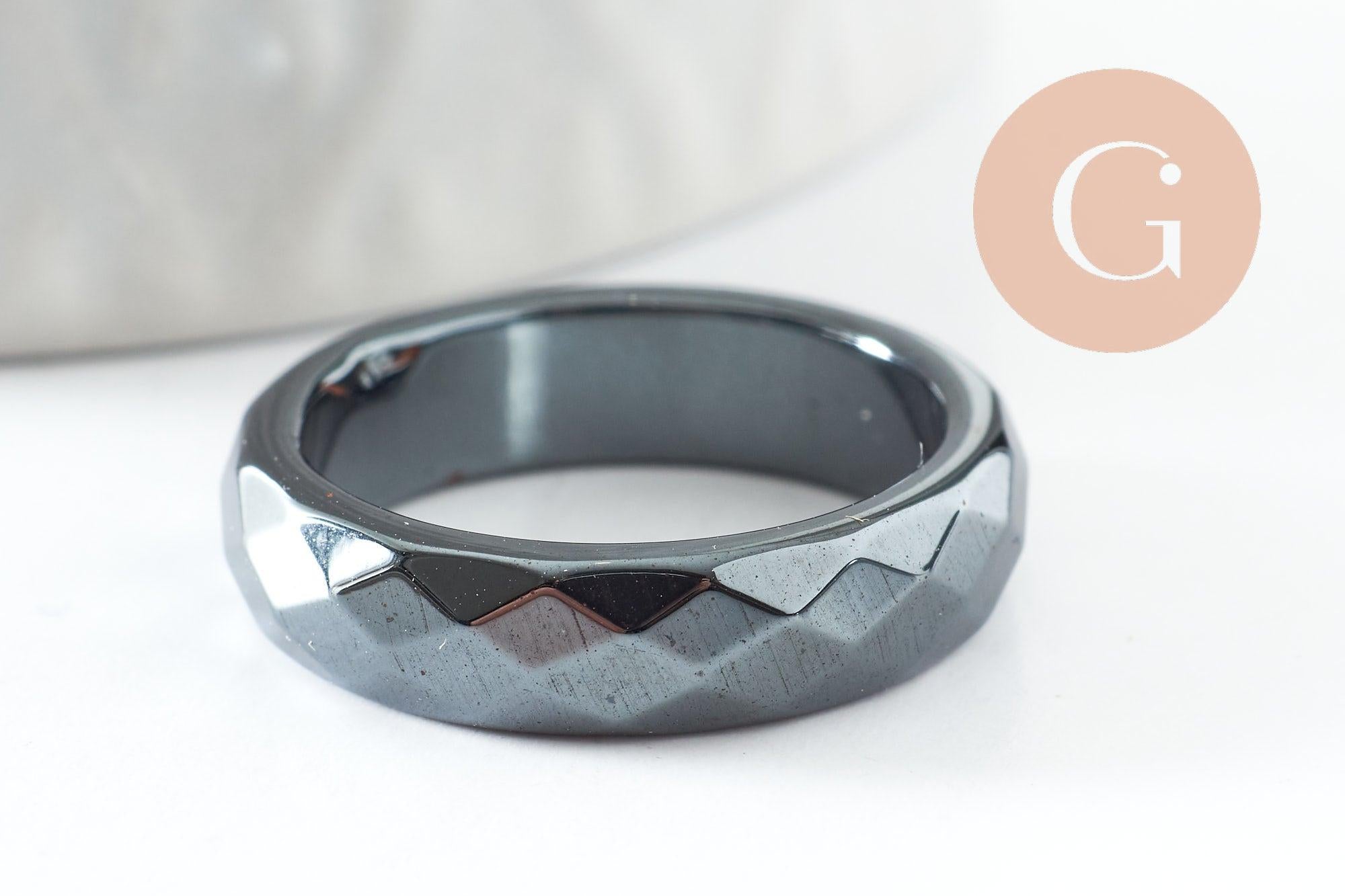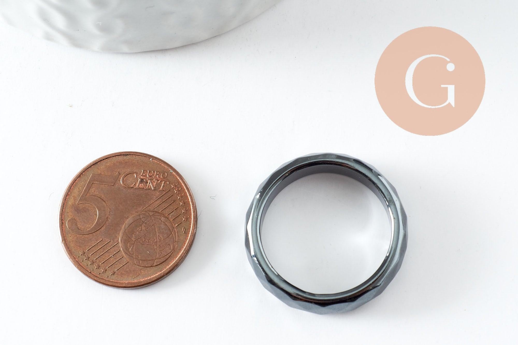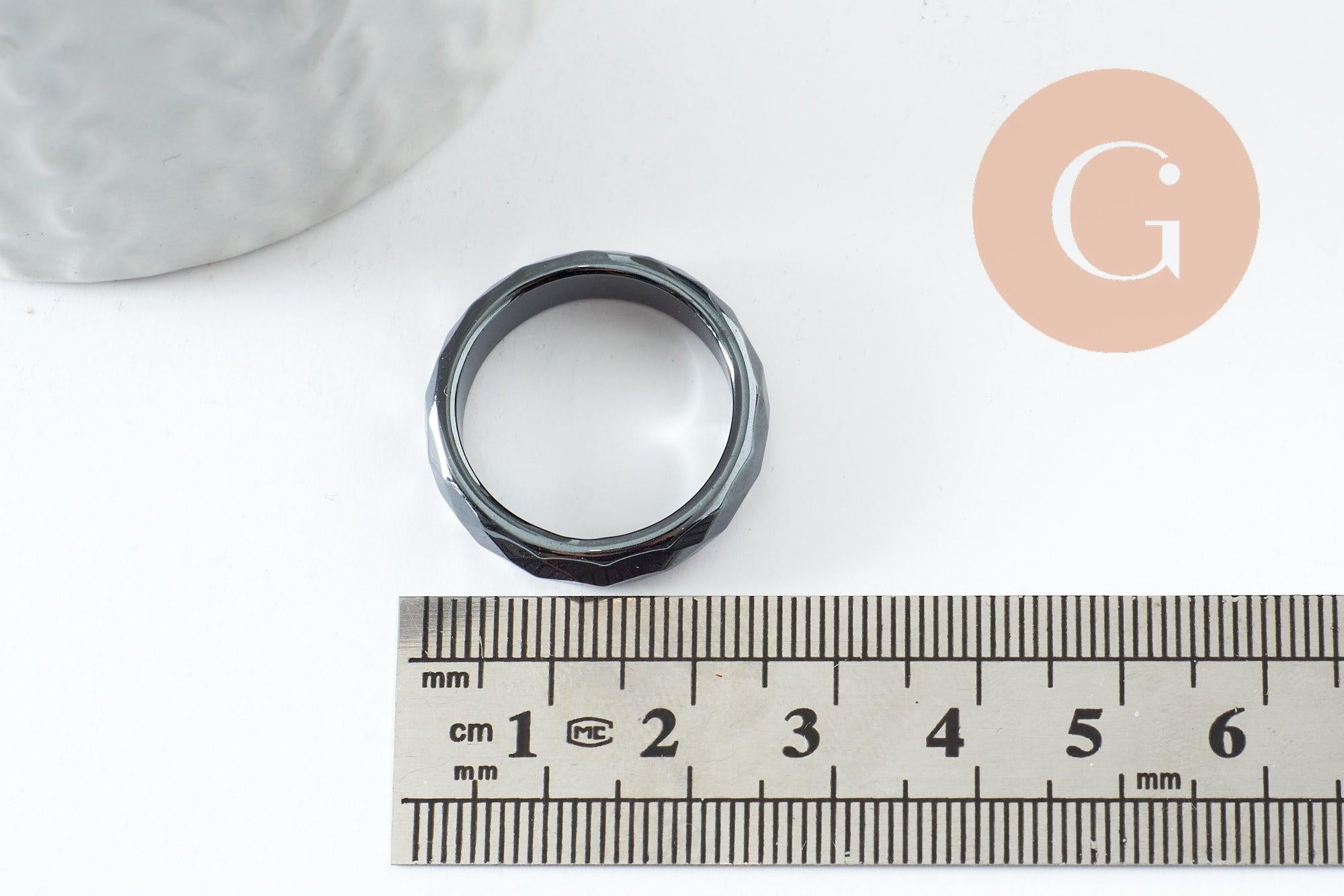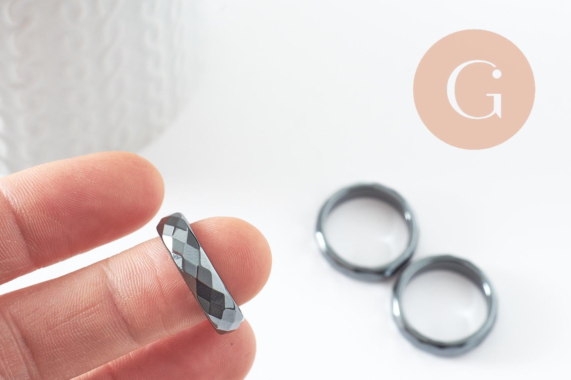 bague hématite noire facetté, une bague classique en hématite non magnétique pour création de bijou en pierre,21mm,l'unité