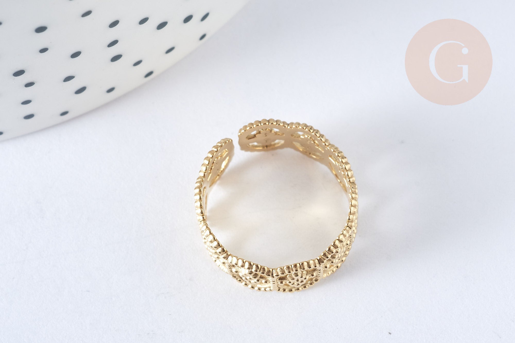 Une ravissante bague large réglable en acier inoxydable façon dentelle. Un bijou fin et intemporel, qui vous accompagnera au quotidien. Elle est composée de fin chevrons striés.
