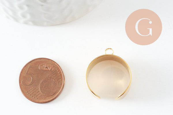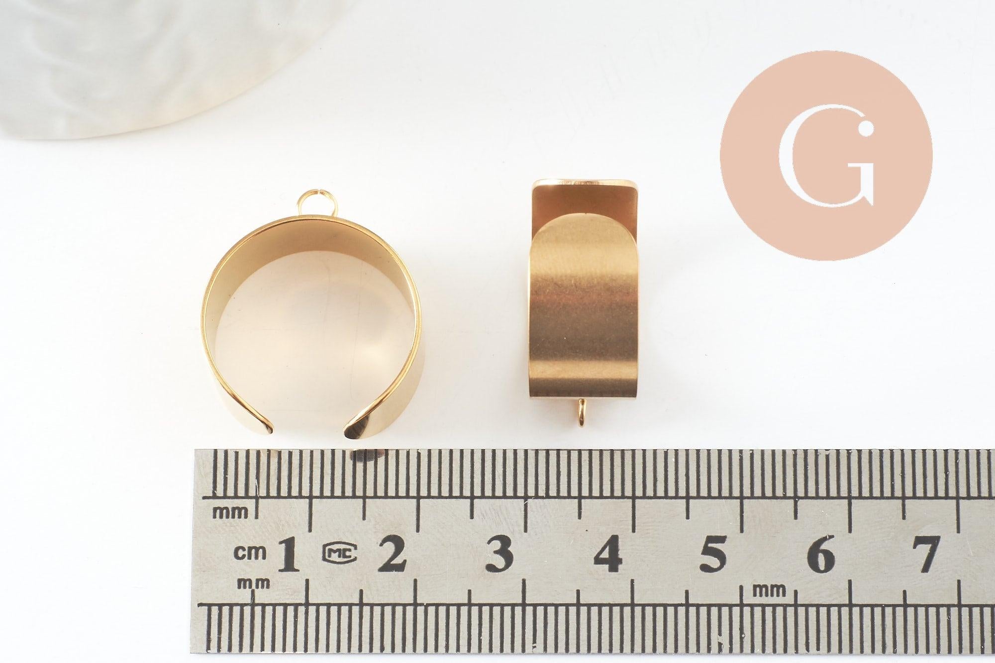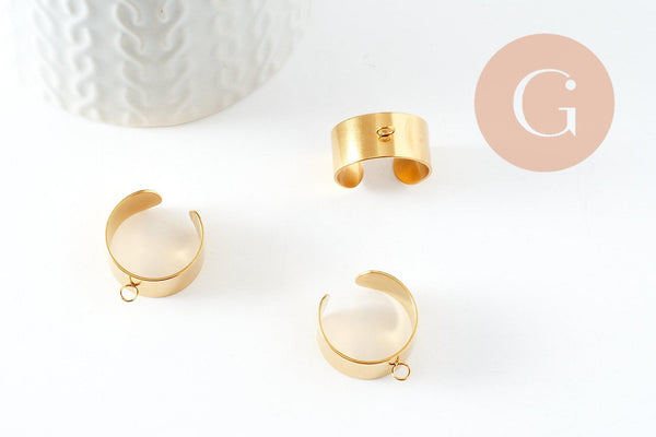 Bague réglable personnalisable acier doré inoxydable avec anneau 18mm, x1 (G9607)