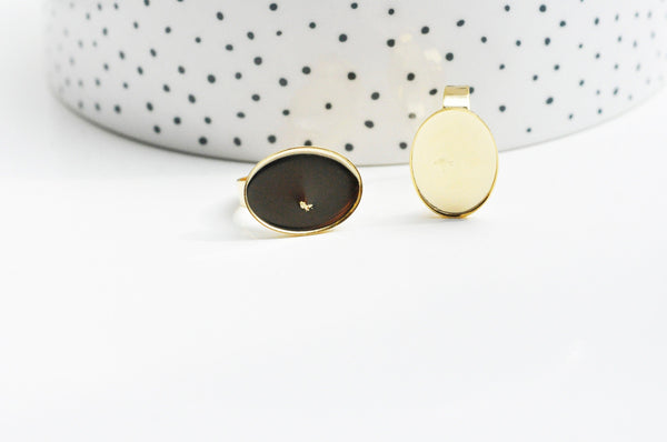Un très beau support de bague en acier doré inoxydable avec un emplacement pour y apposer un cabochon ovale 18x13mm
