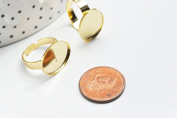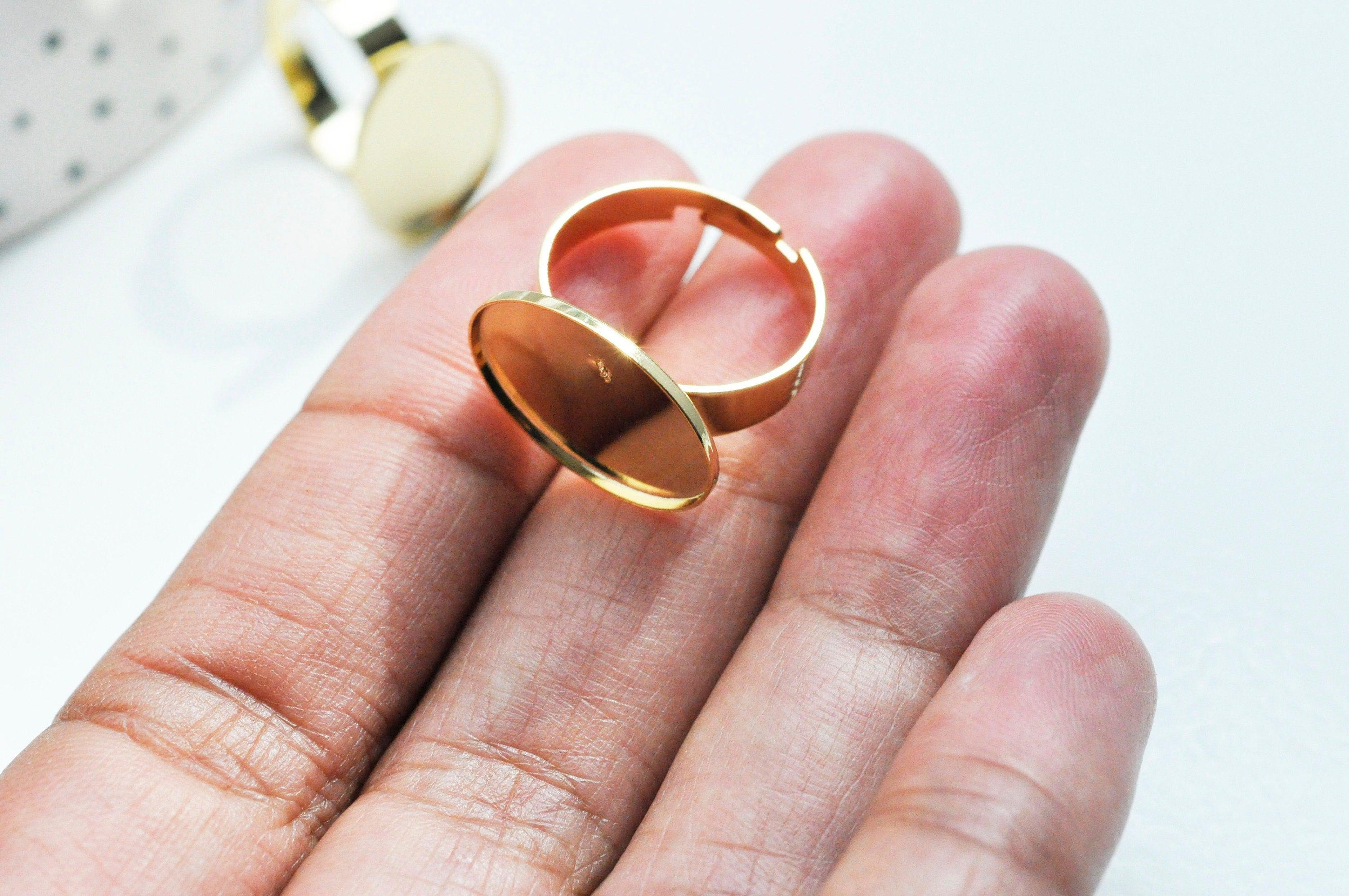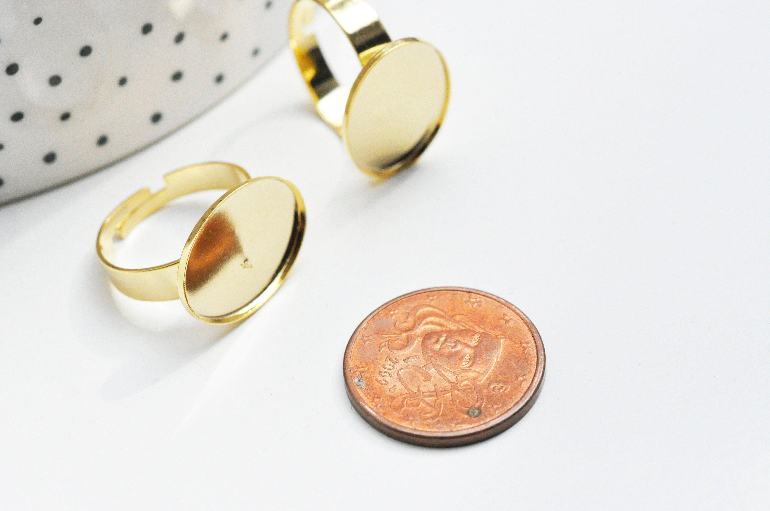 Bague réglable pour cabochon 18.5x13.5mm en acier doré inoxydable, un support bague personnalisable pour creation bijoux,17mm,les 2