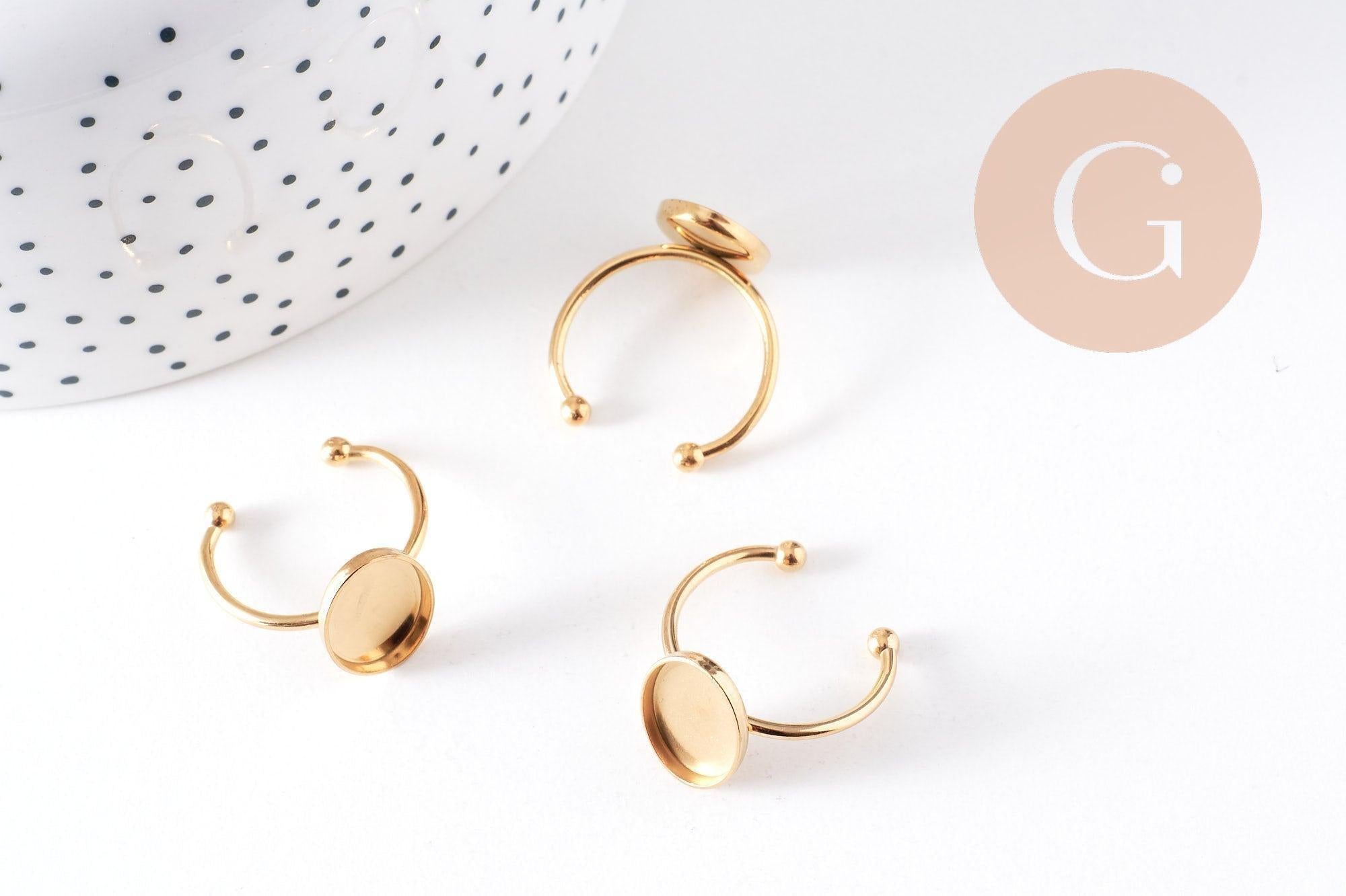 Grâce à son revêtement doré par dépôt ionique (IP), cette bague est durable, résistante à l’usure et à l’oxydation. Son design sobre et élégant en fait une base parfaite pour créer des bagues personnalisées avec des cabochons en pierre naturelle, en résine ou en verre.