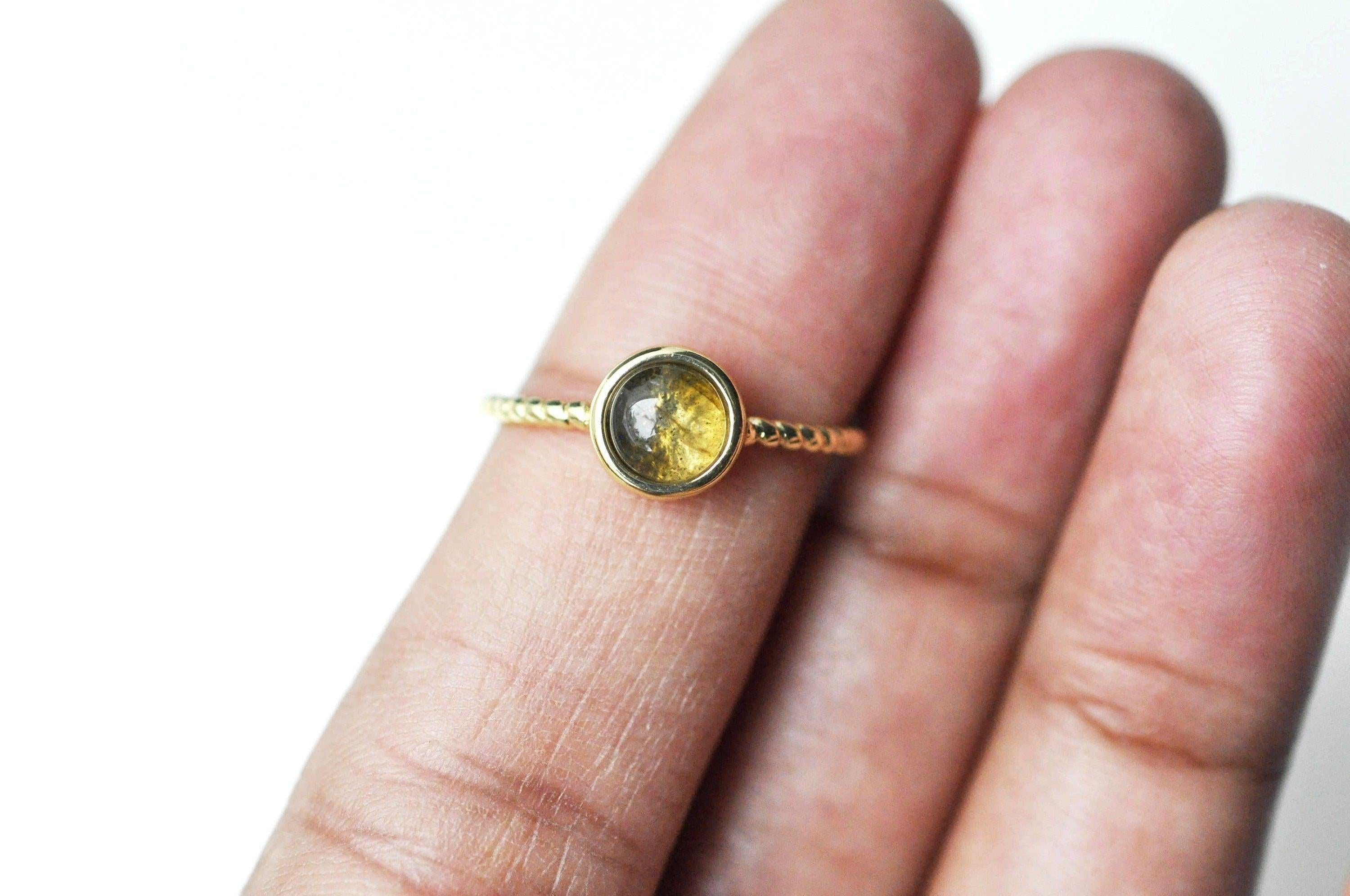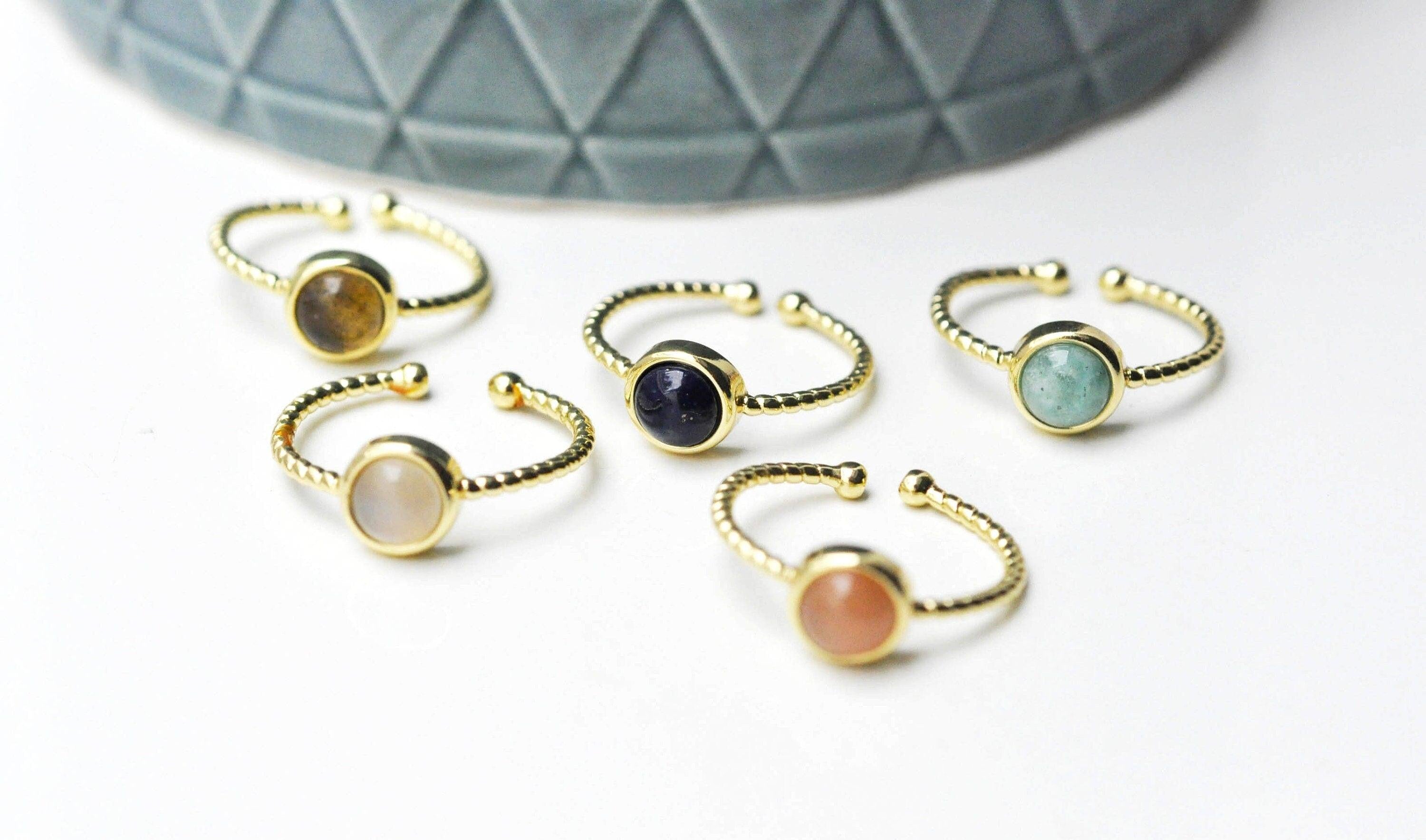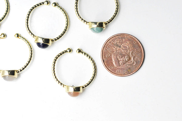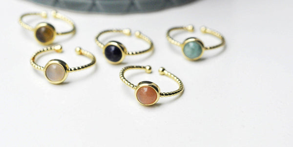bague réglable torsadée laiton doré cabochon pierre naturelle, bague fine à offrir, bijoux cadeau à offrir, 20mm, l'unité