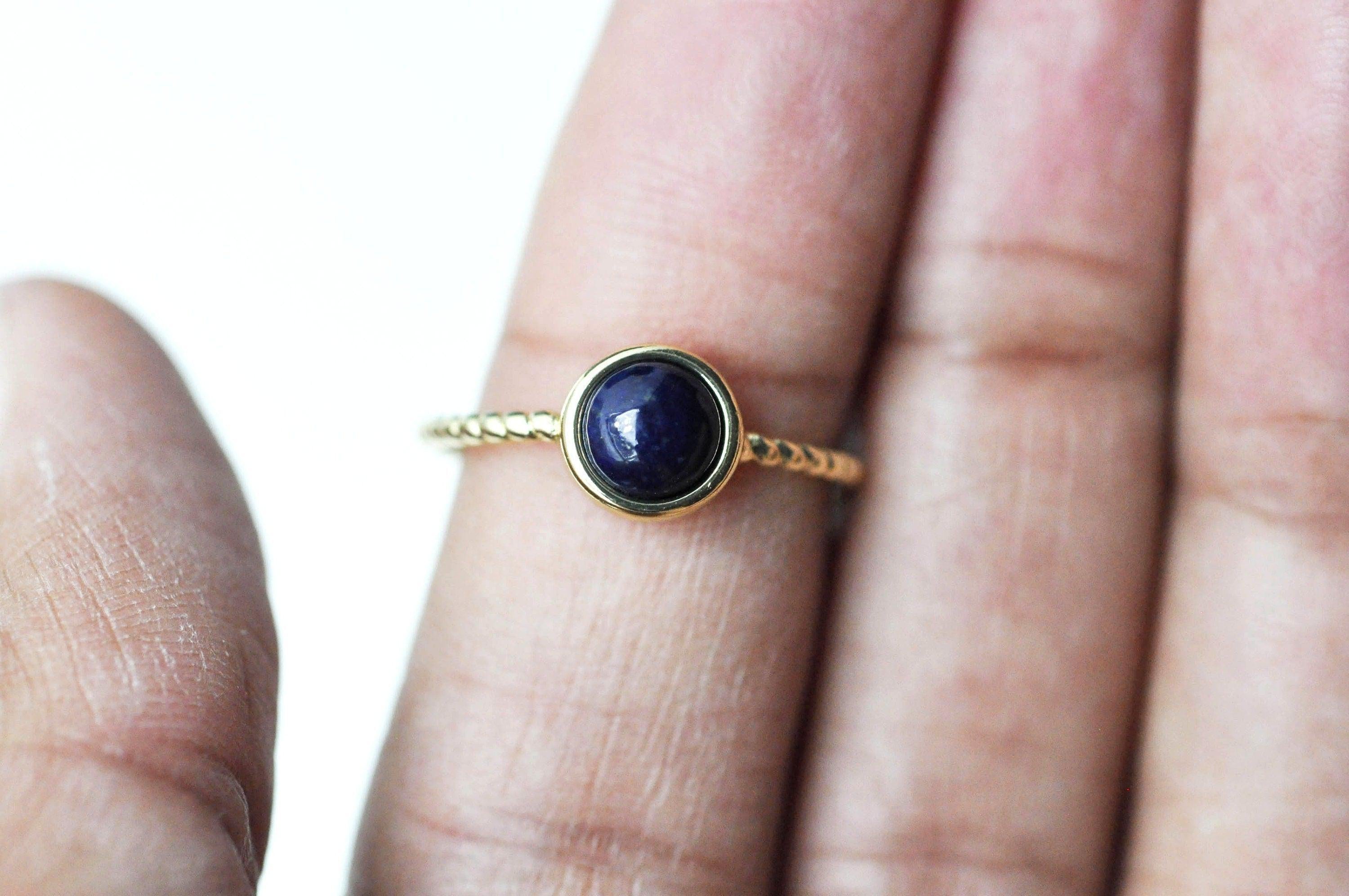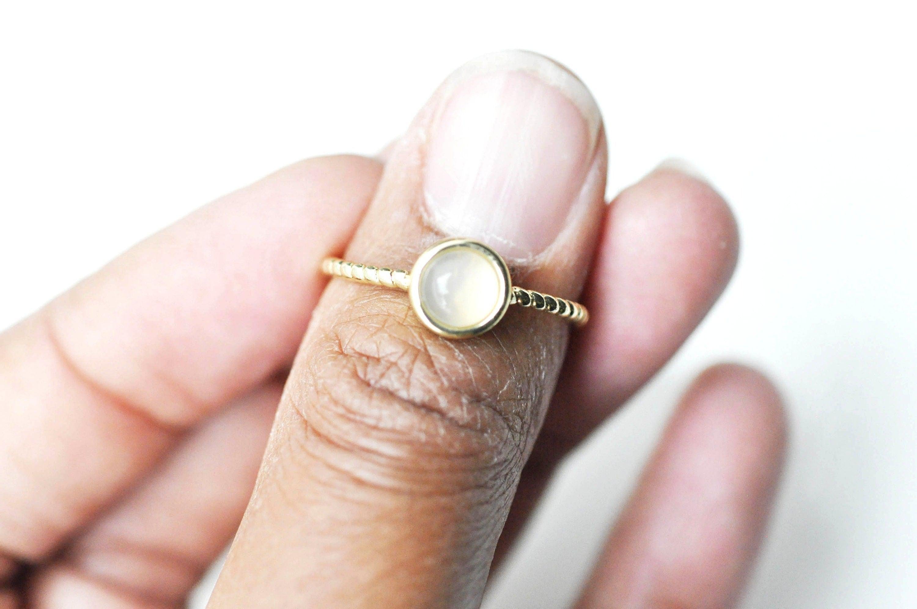 Une adorable bague fine, décorée d'un cabochon en pierre naturelle. la bague est réglable