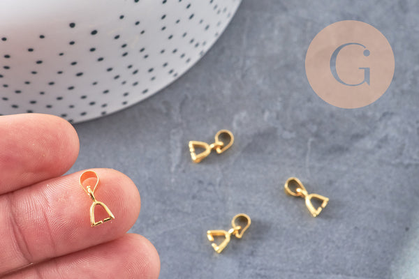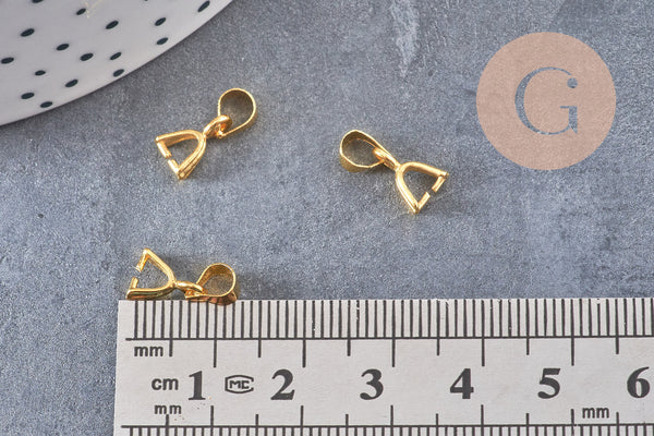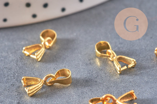 Bélière en laiton doré à pincer, sa finition est parfaite grâce à son design en forme de coquillage et à son anneau intégré.