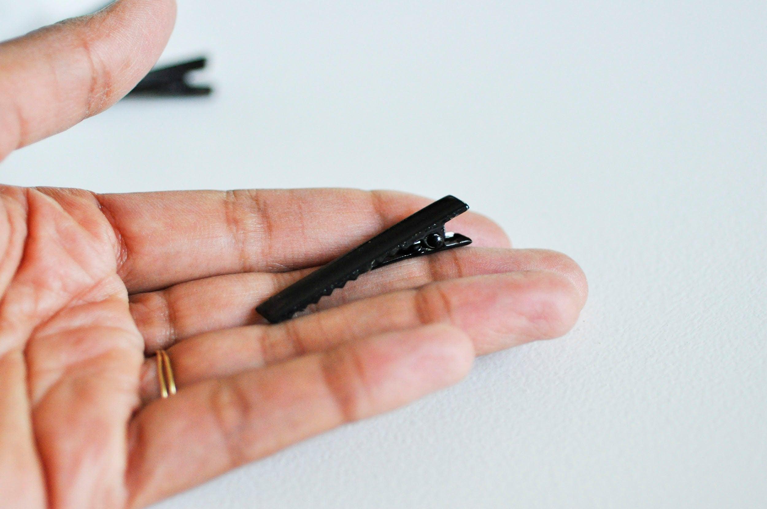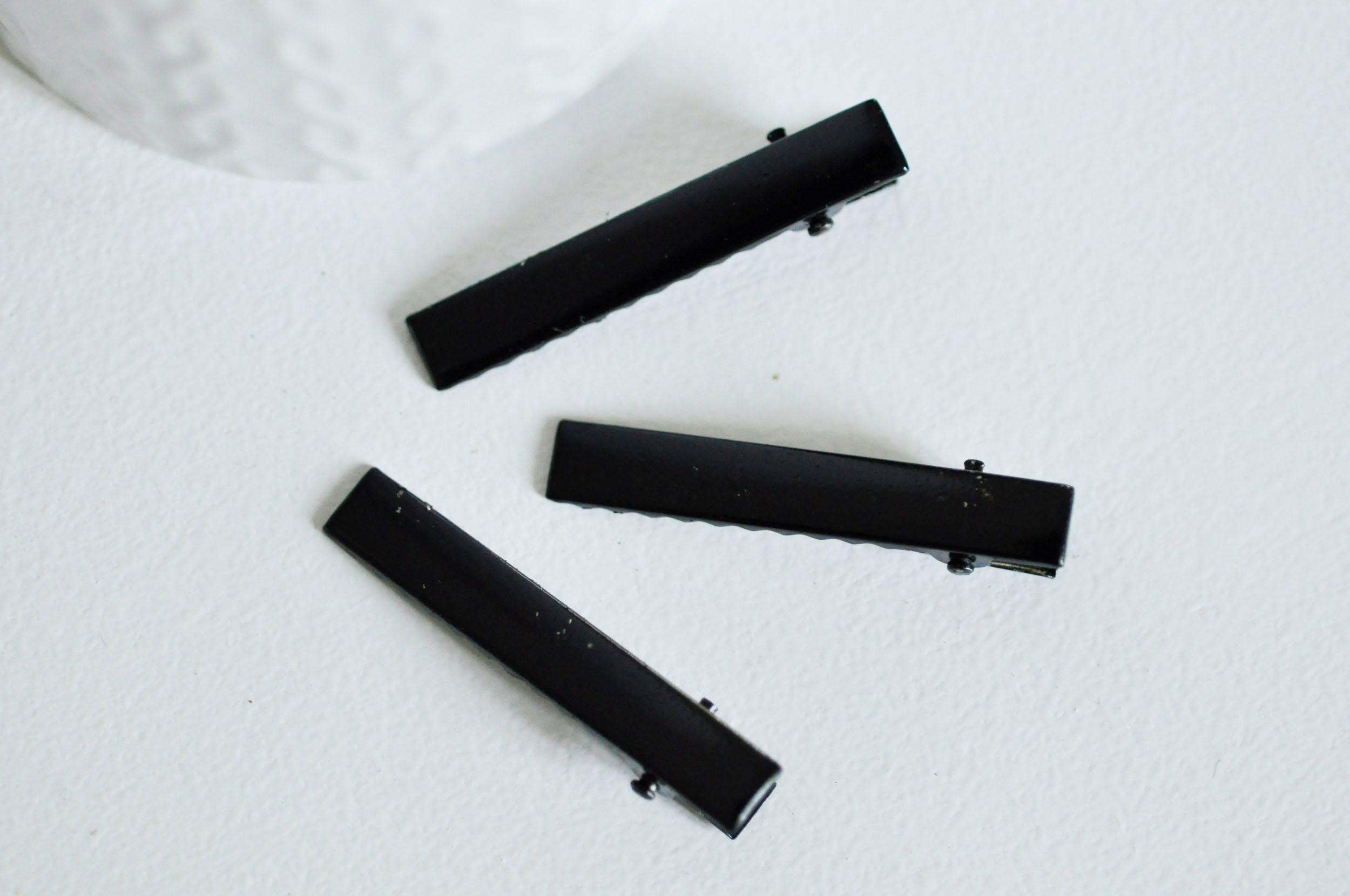 Supports barrette métal noir sans plateau,fournitures créatives, pince crocodile,accessoires cheveux, fabrication bijoux, lot de 2, 4cm Un lot de 2 supports de barrettes en métal couleur noire, à adopter de suite pou réaliser des barrettes personnalisées, avec de jolis cabochons......