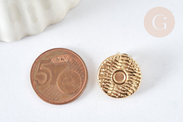 Boucles d'oreilles à clip acier 304 inoxydable doré cabochon rond16mm, la paire (G7908)