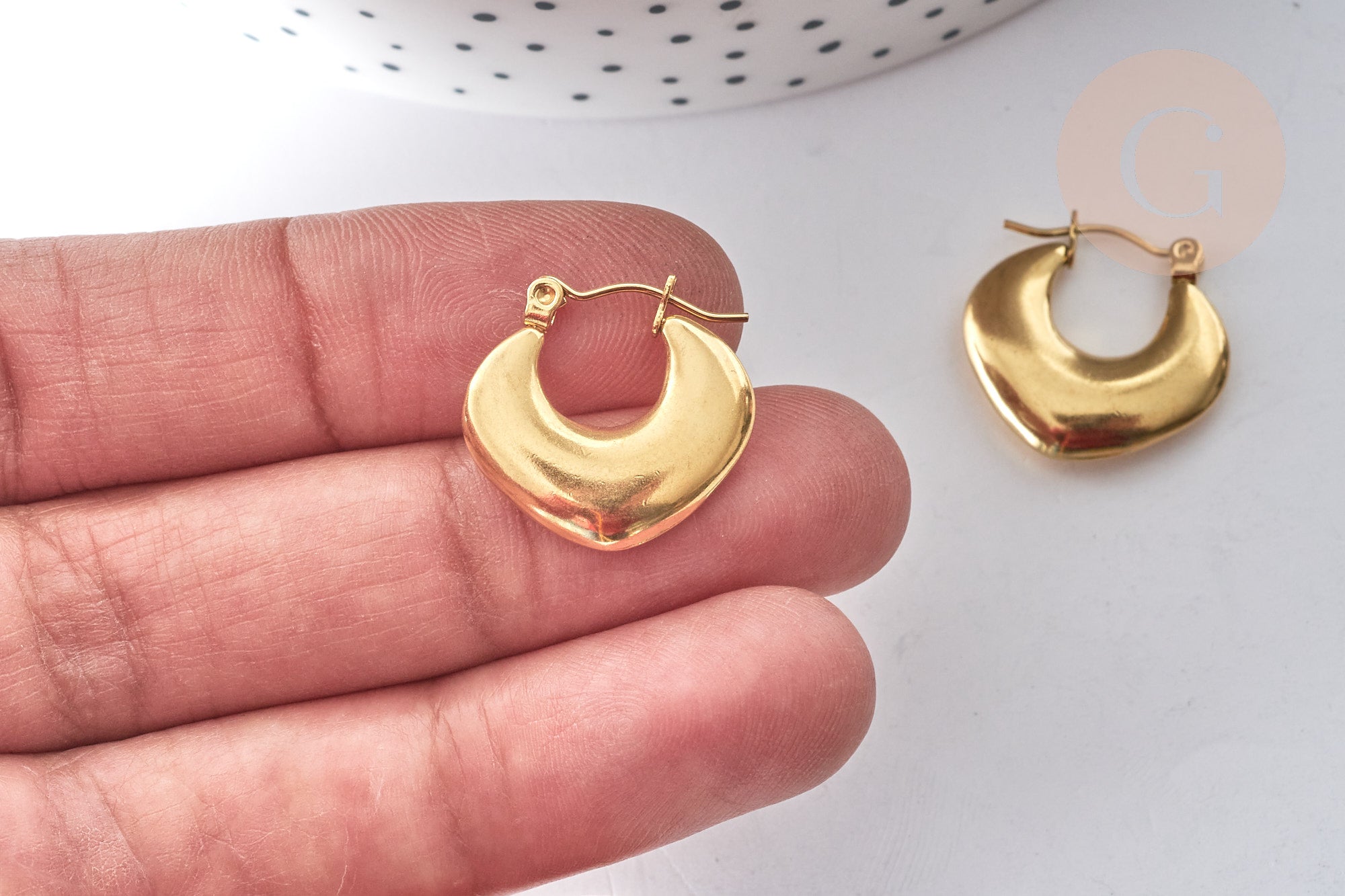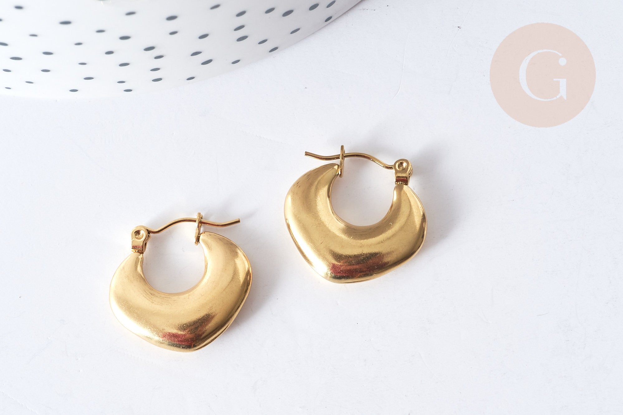 Adoptez cette paire de boucles d'oreilles créoles en forme de losange arrondi. Celles-ci sont en acier 304 inoxydable doré. Résistant à l'eau, l'acier est aussi hypoallergénique.