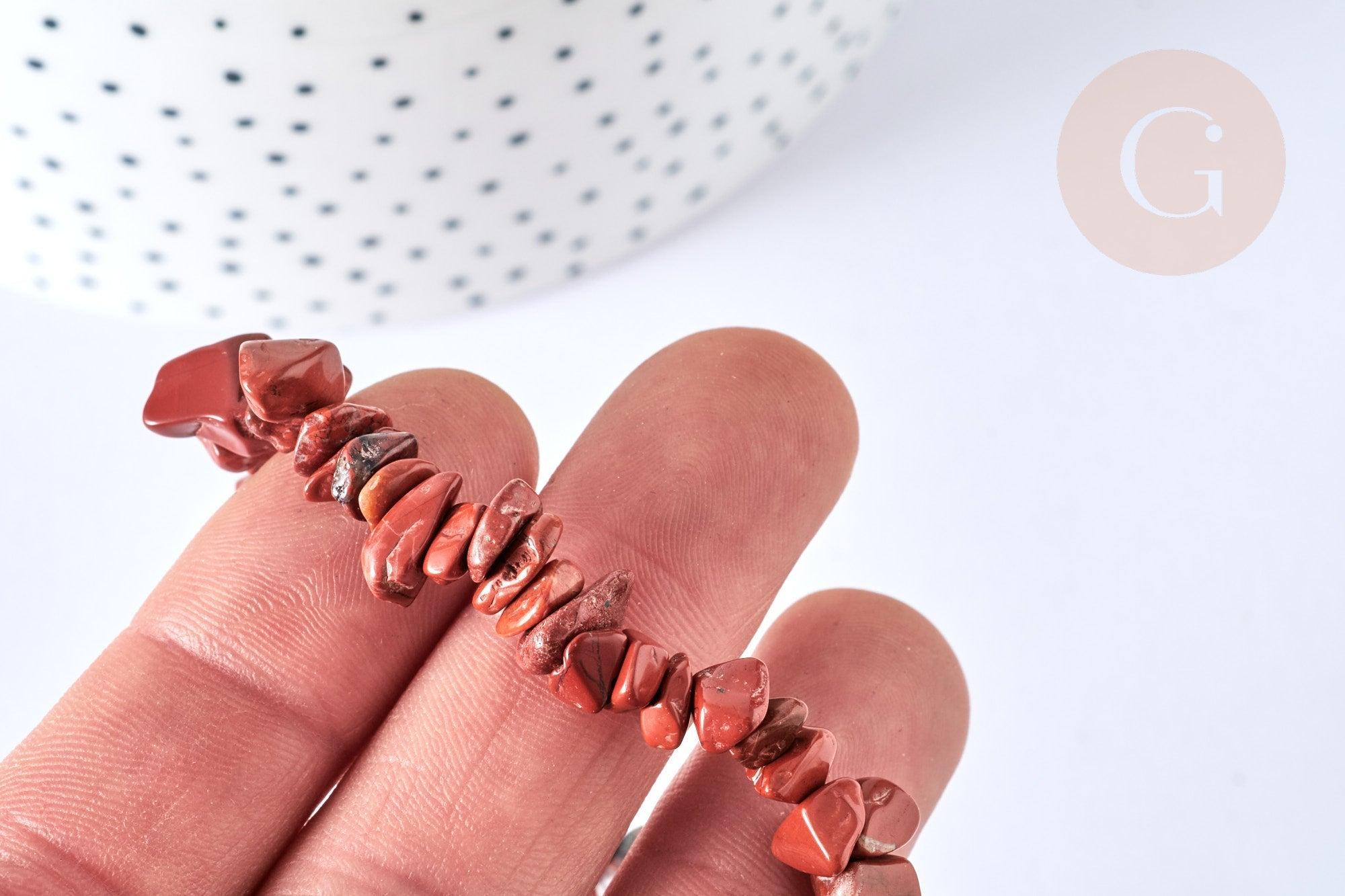 Afin de contribuer à stabiliser vos émotions, ce bracelet élastique en jaspe rouge est fortement contribué pour la méditation.