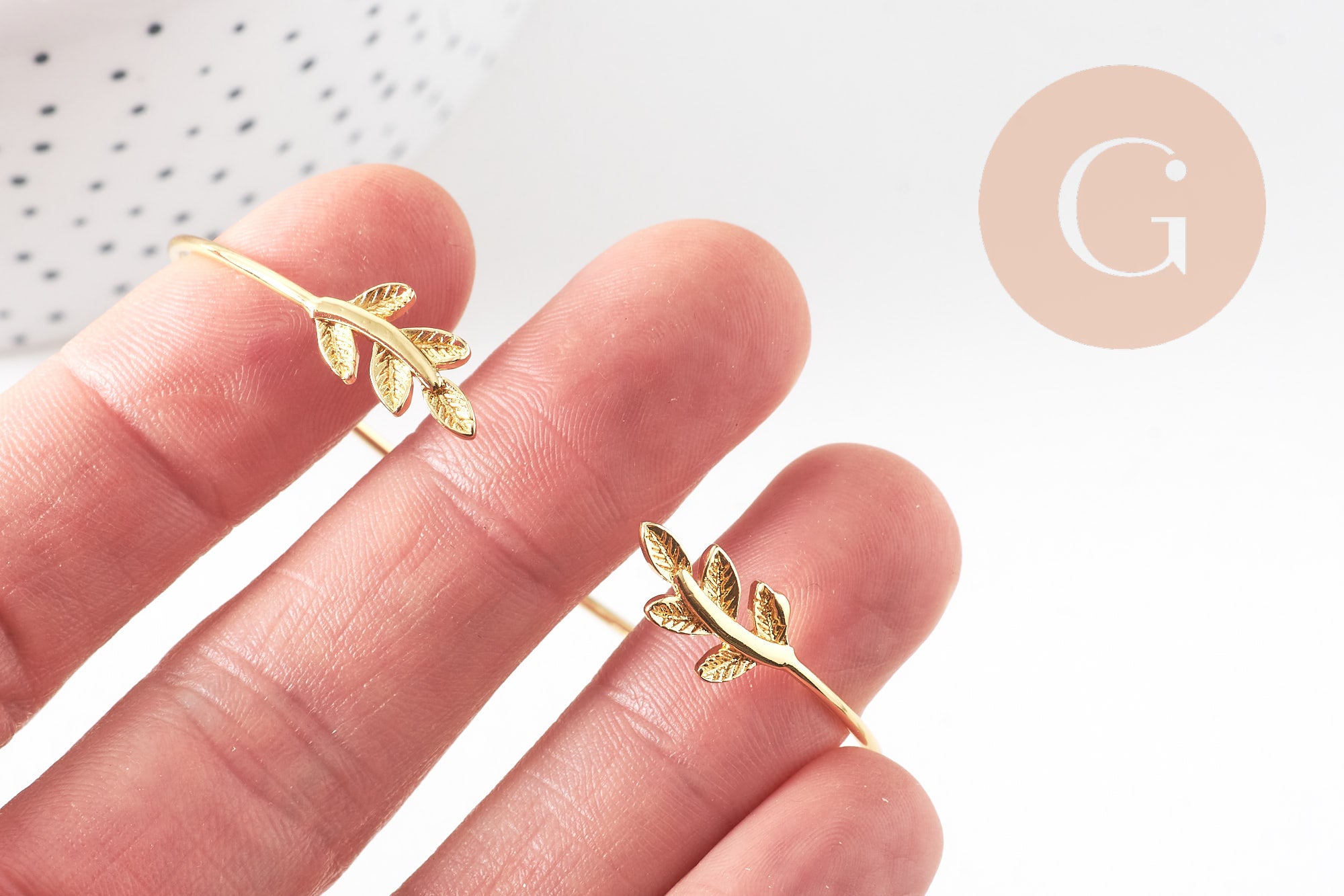 Sublimez vos créations avec ce bracelet jonc réglable doré 16k, orné d'un délicat motif feuille.