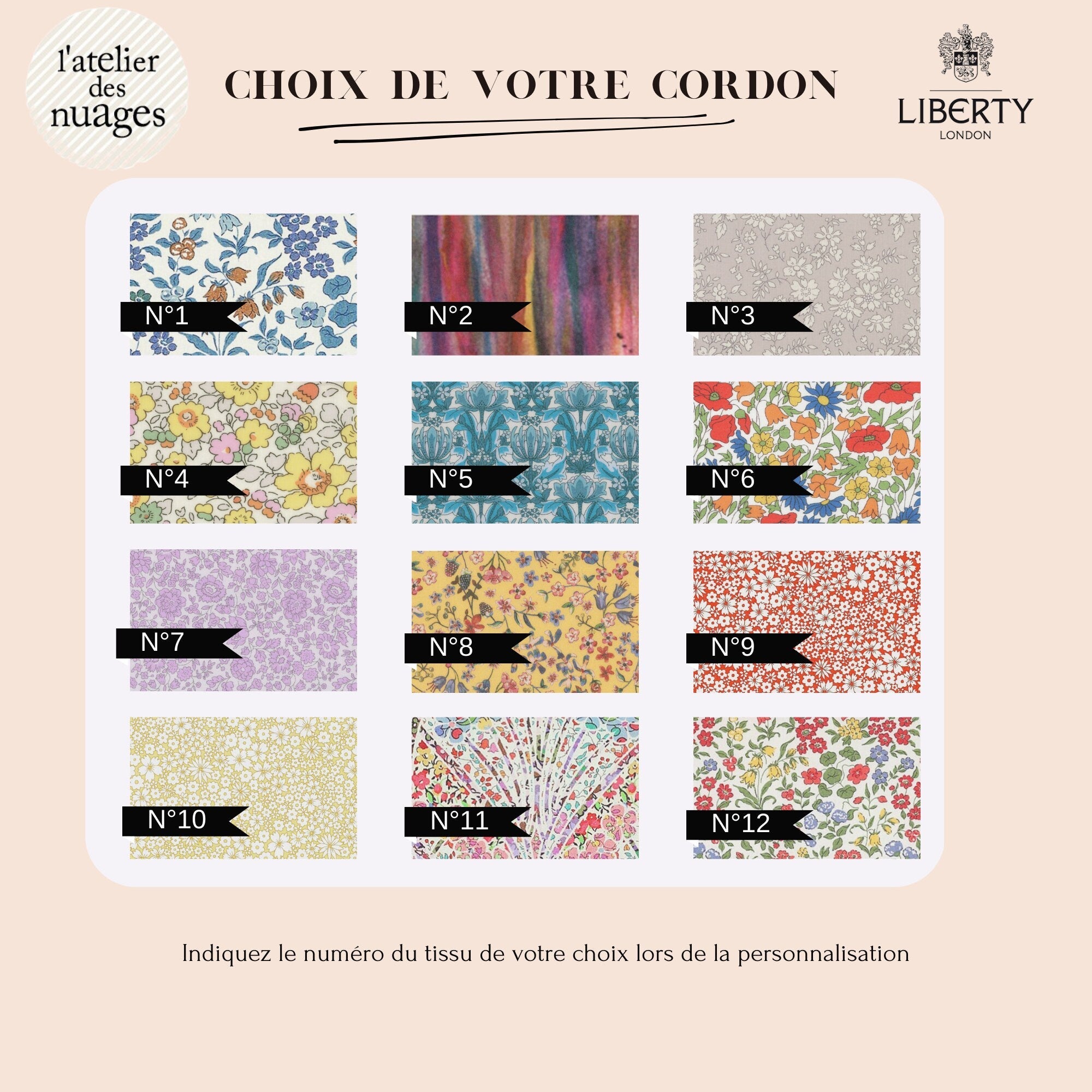 • Cordon : tissu liberty doux et coloré