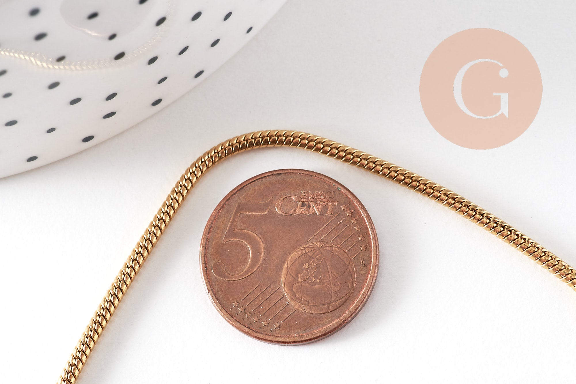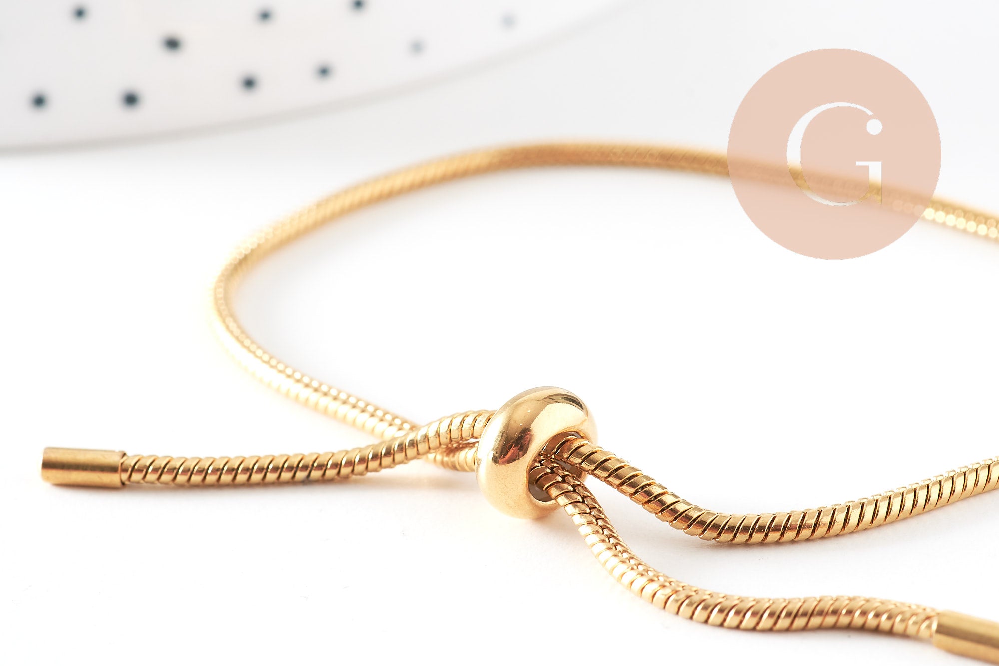 Bracelet réglable chaine serpent acier inoxydable doré, fermoir frein, sans nickel, 14k 2mm/ 27cm, x1 (G5496)