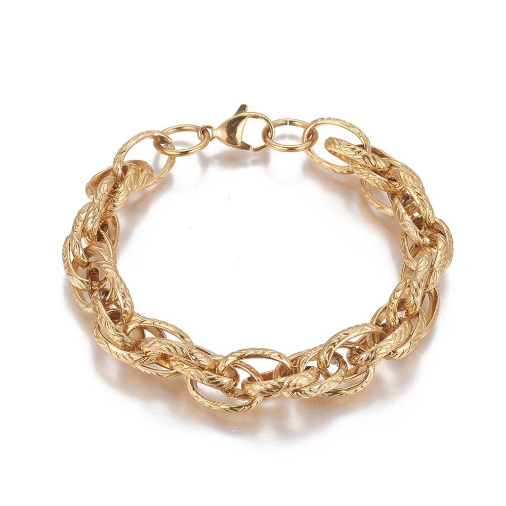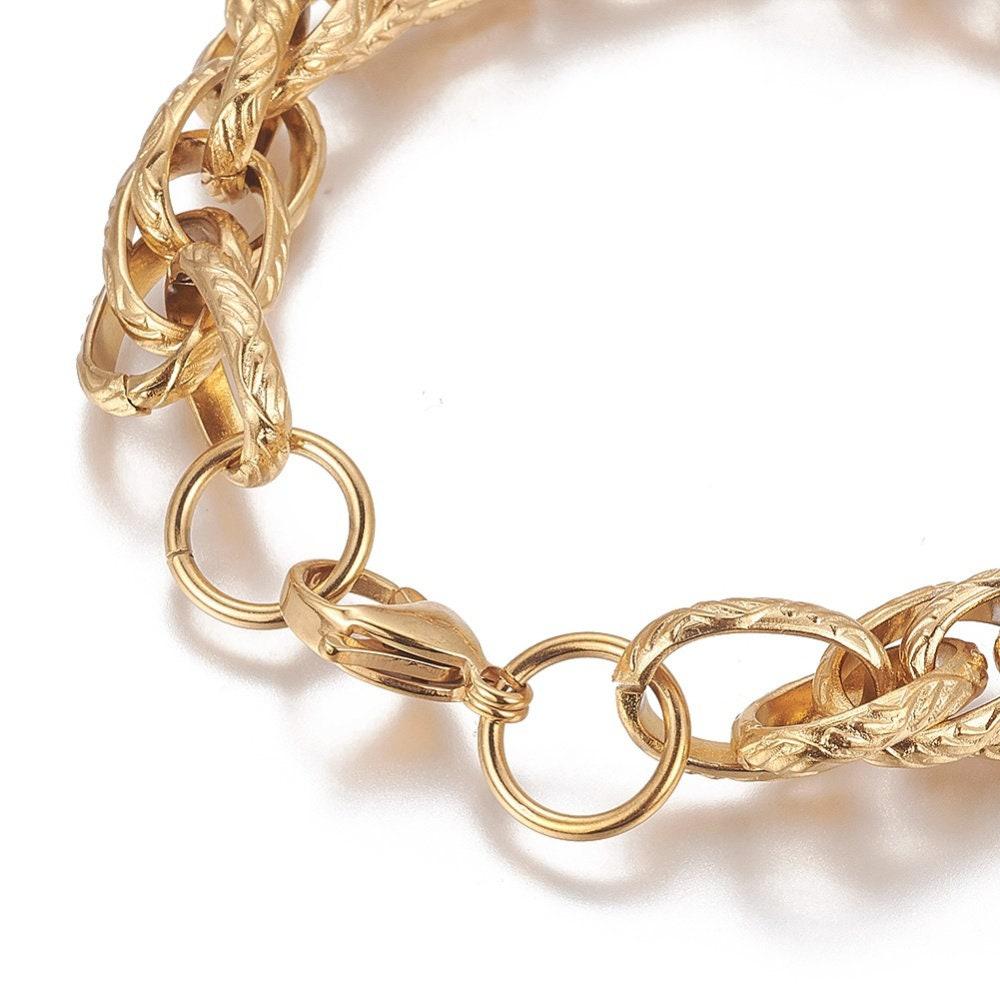 Bracelet très grosse maille acier 304 inoxydable doré IP 14k 20.5cm, x1 (G4197)