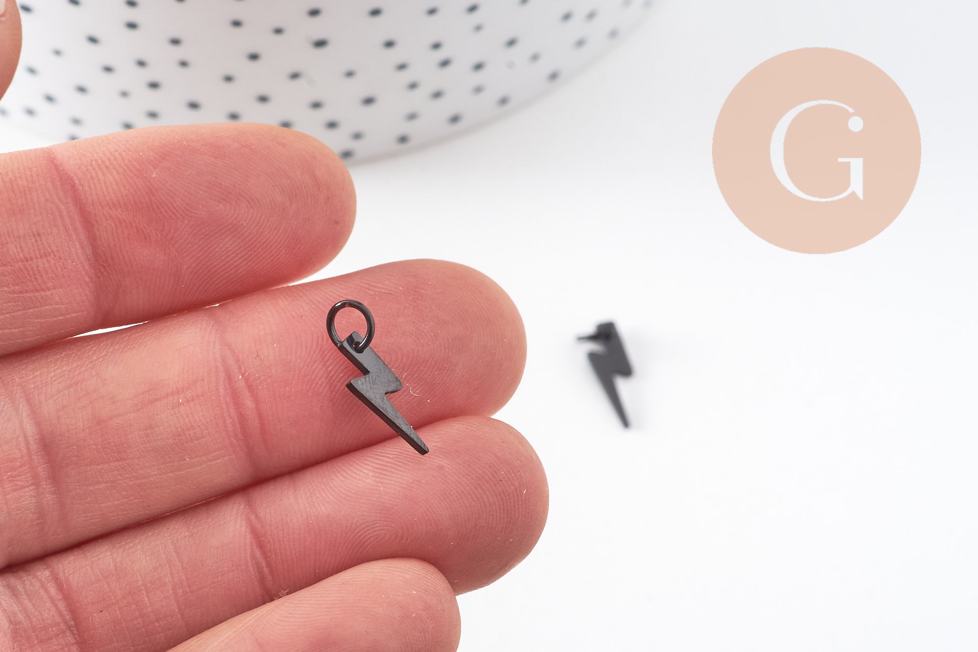 Ajoutez une touche rock, moderne et audacieuse à vos créations avec cette breloque éclair noire en acier inoxydable 304 noir IP. Avec son look graphique et son fini opaque, elle apportera du caractère à vos bijoux DIY, idéale pour des créations minimalistes, edgy ou streetwear.