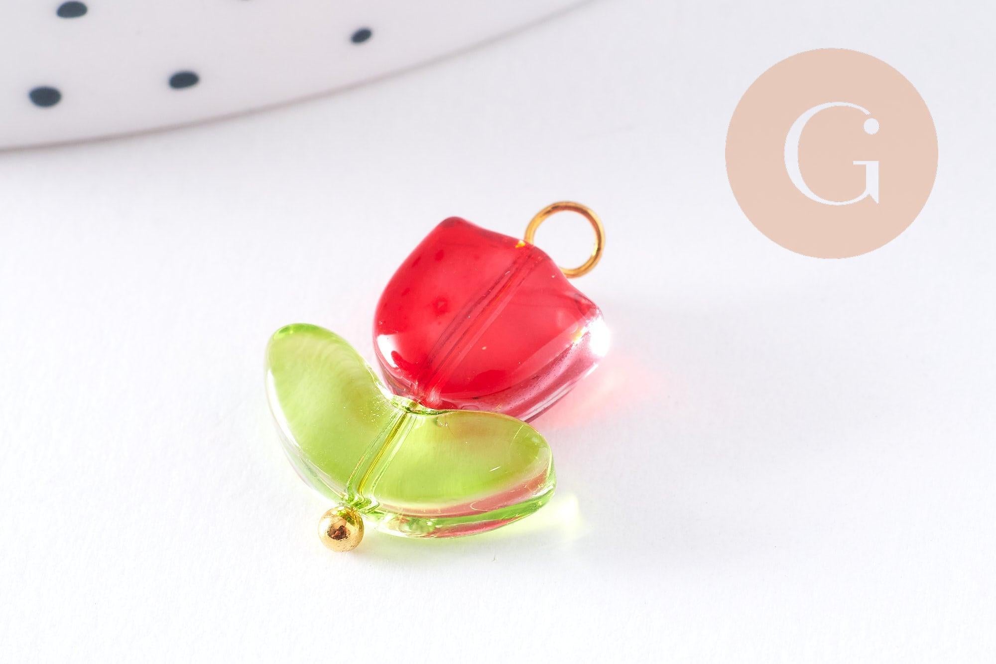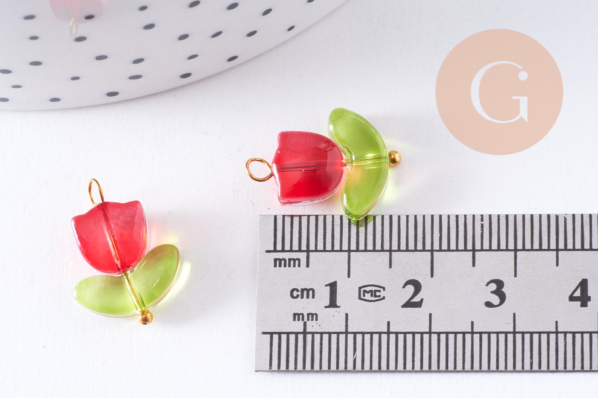 Ajoutez une touche florale et artisanale à vos créations avec ces breloques tulipe en verre rouge foncé, façonnées à la main en verre artisanal , et montées sur une tige en laiton doré. Leur forme délicate et leur couleur intense en font des éléments parfaits pour des bijoux poétiques, romantiques ou printaniers.