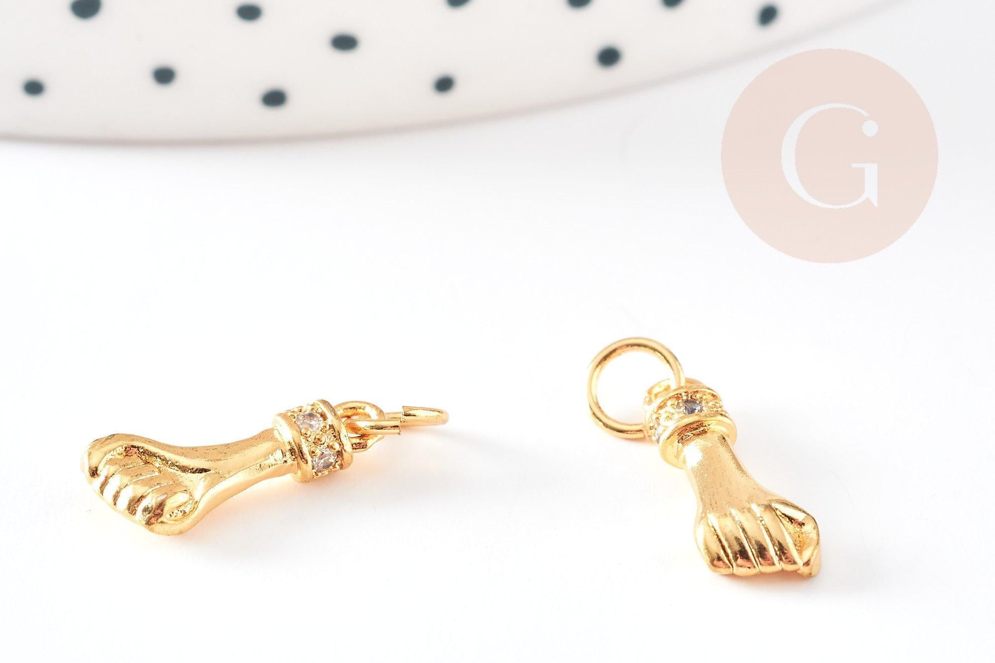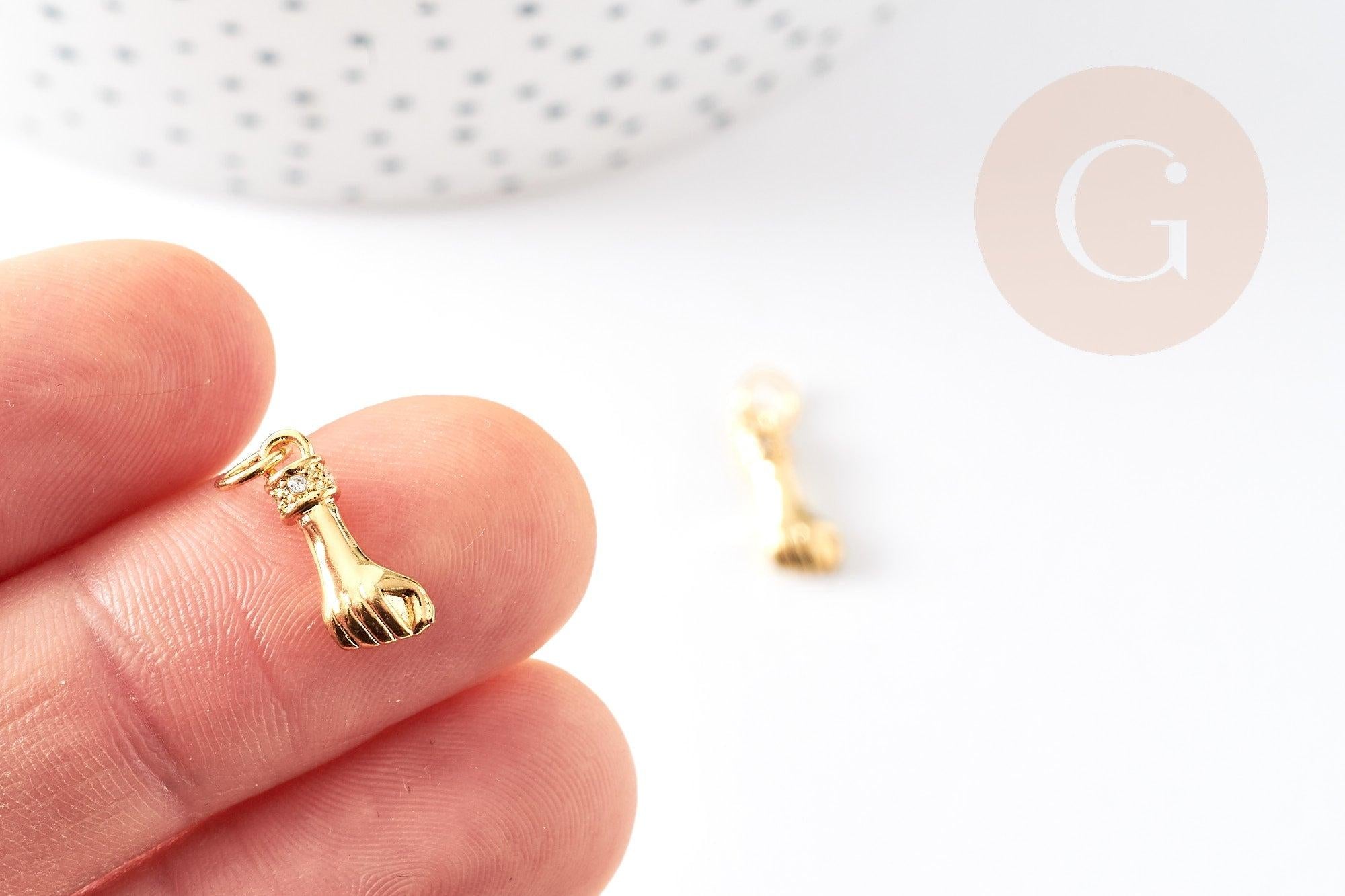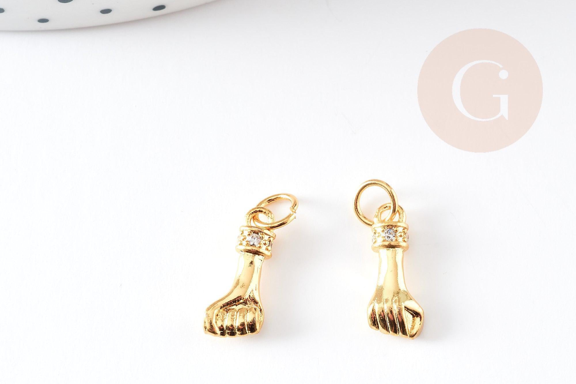 Pour réaliser de magnifiques colliers, boucles et bracelets, adoptez cette main, représentant un poing fermé, en laiton doré, décorée de petits zircons brillants blancs.