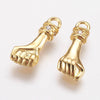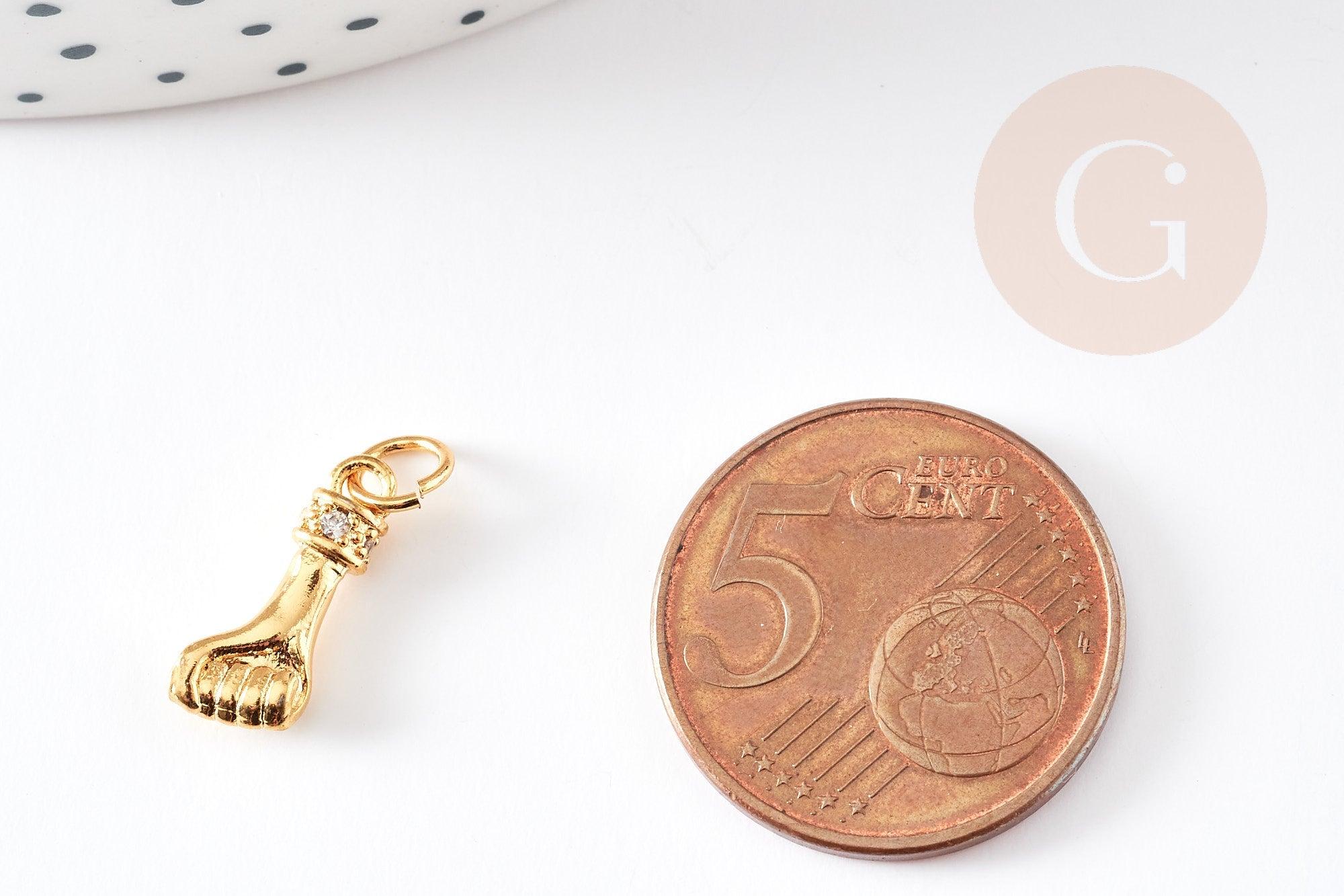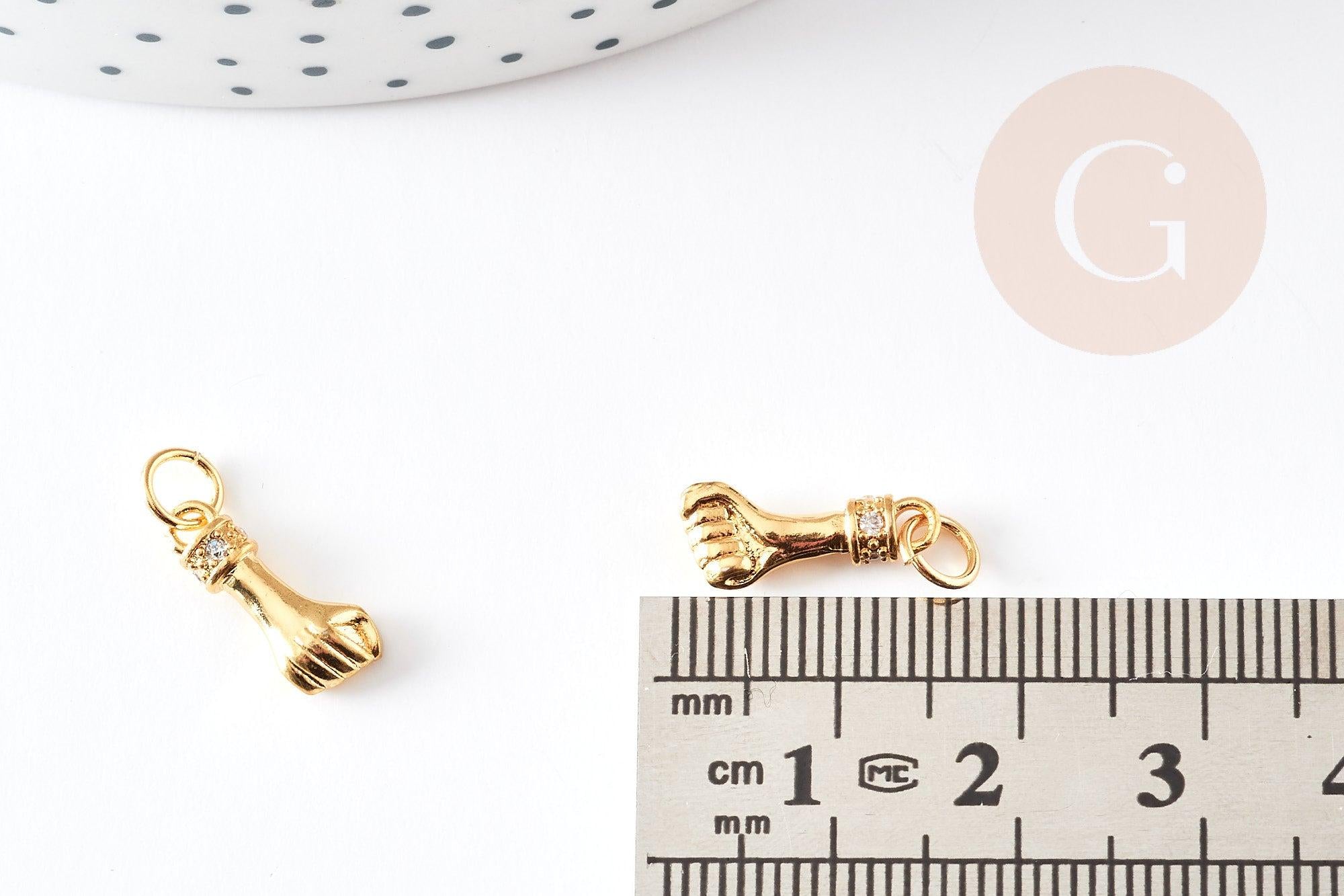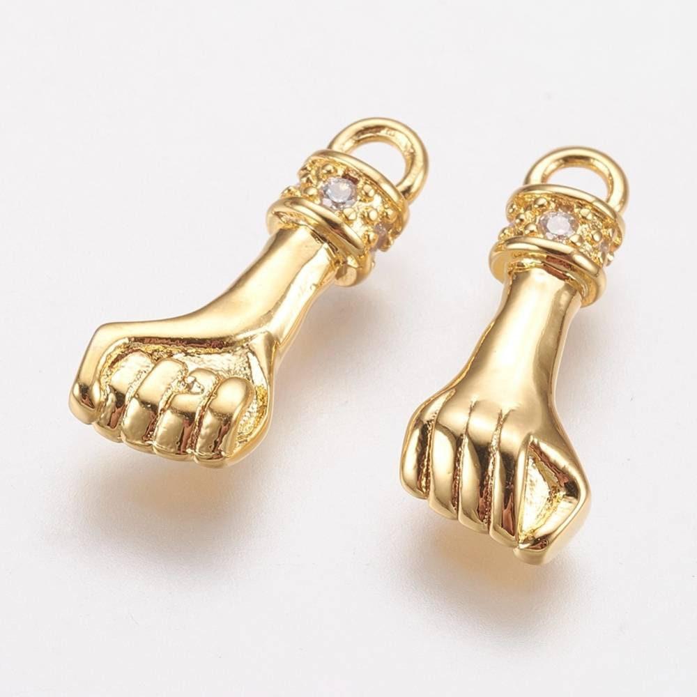 Breloque main poing laiton doré 18k cristal zircon,Pendentif zircon pour création de bijoux,14.5mm, l'unité