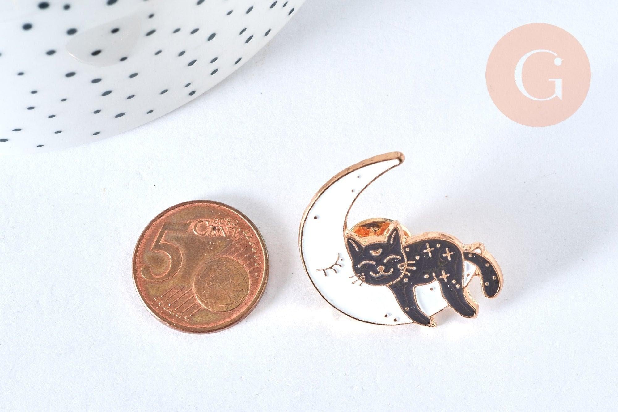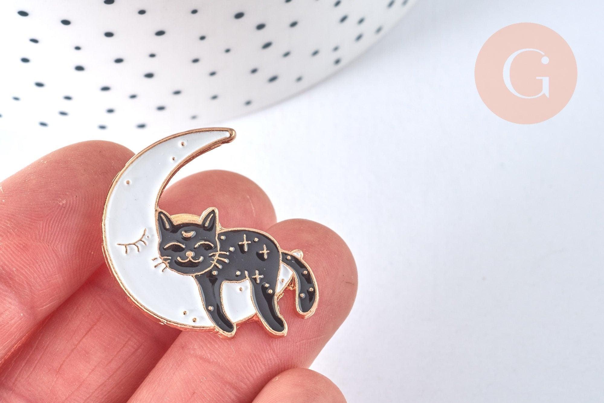 Nous vous proposons cette ravissante broche / Pin's représentant un chat en train de dormir sur une lune.