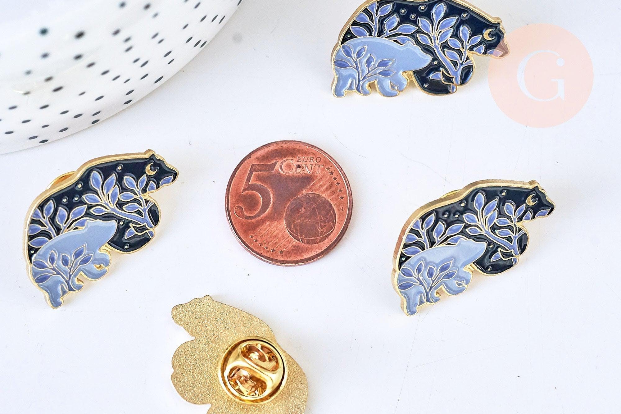 EP-Broche pins ours motif végétal doré émail noir violet 30x18mm, x1 G5537