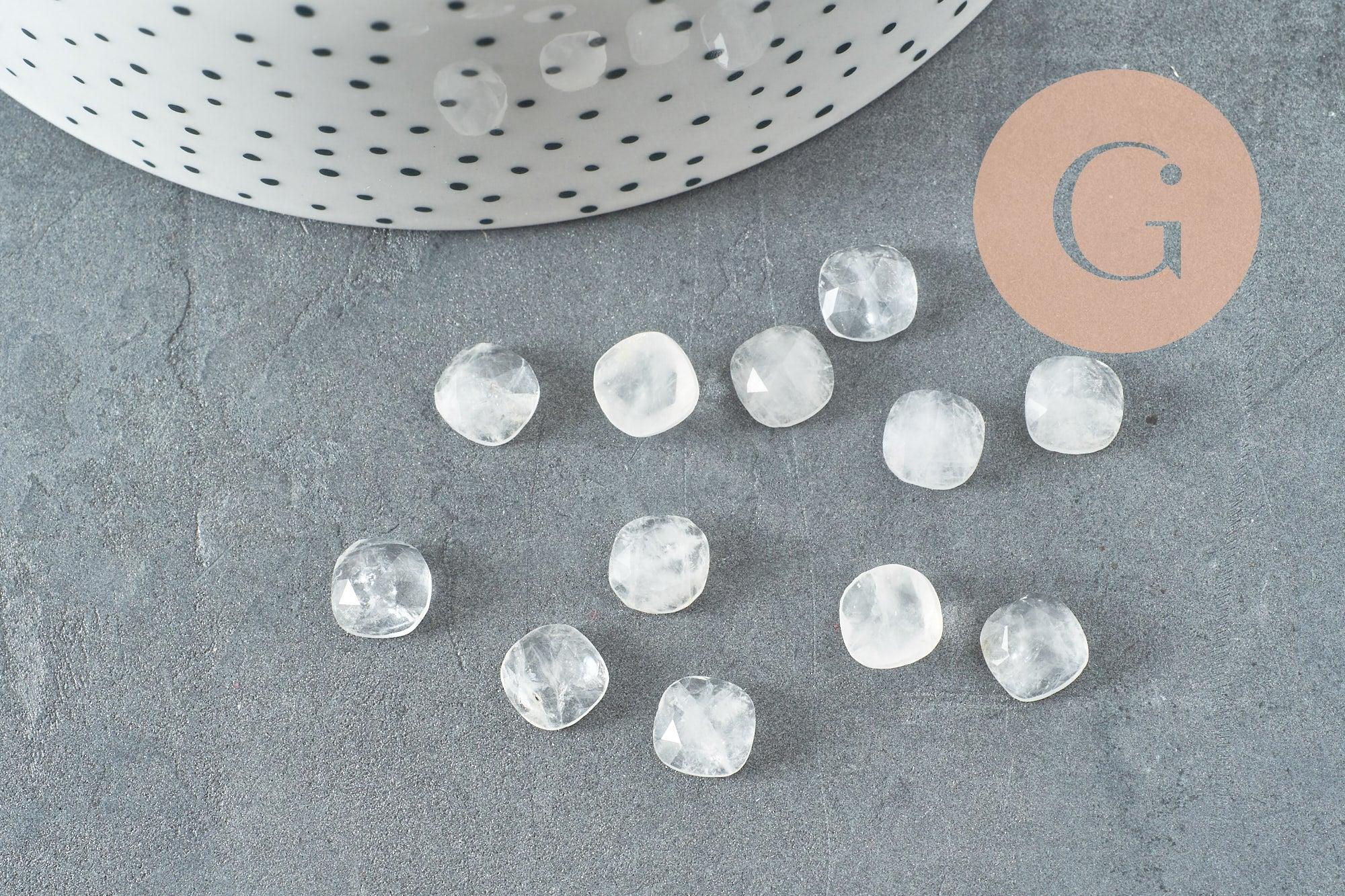 Adoptez ce cabochon carré en cristal de roche naturel facettée pour la création de bijoux délicat