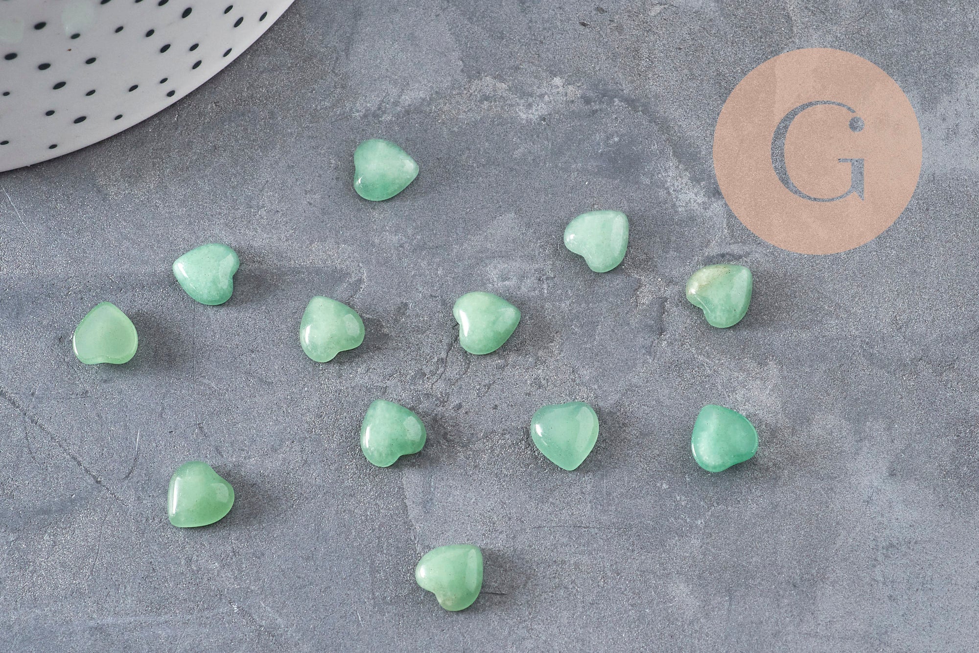 Cabochon cœur en aventurine naturelle verte 8×8 mm, idéal pour créer des bijoux DIY doux, symboliques et inspirés de la nature.