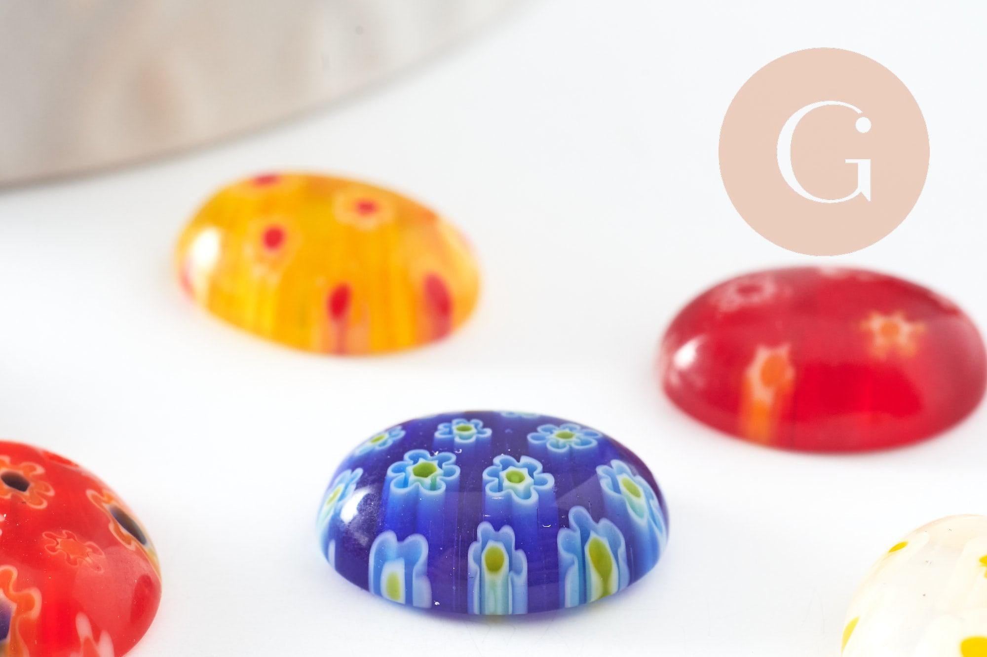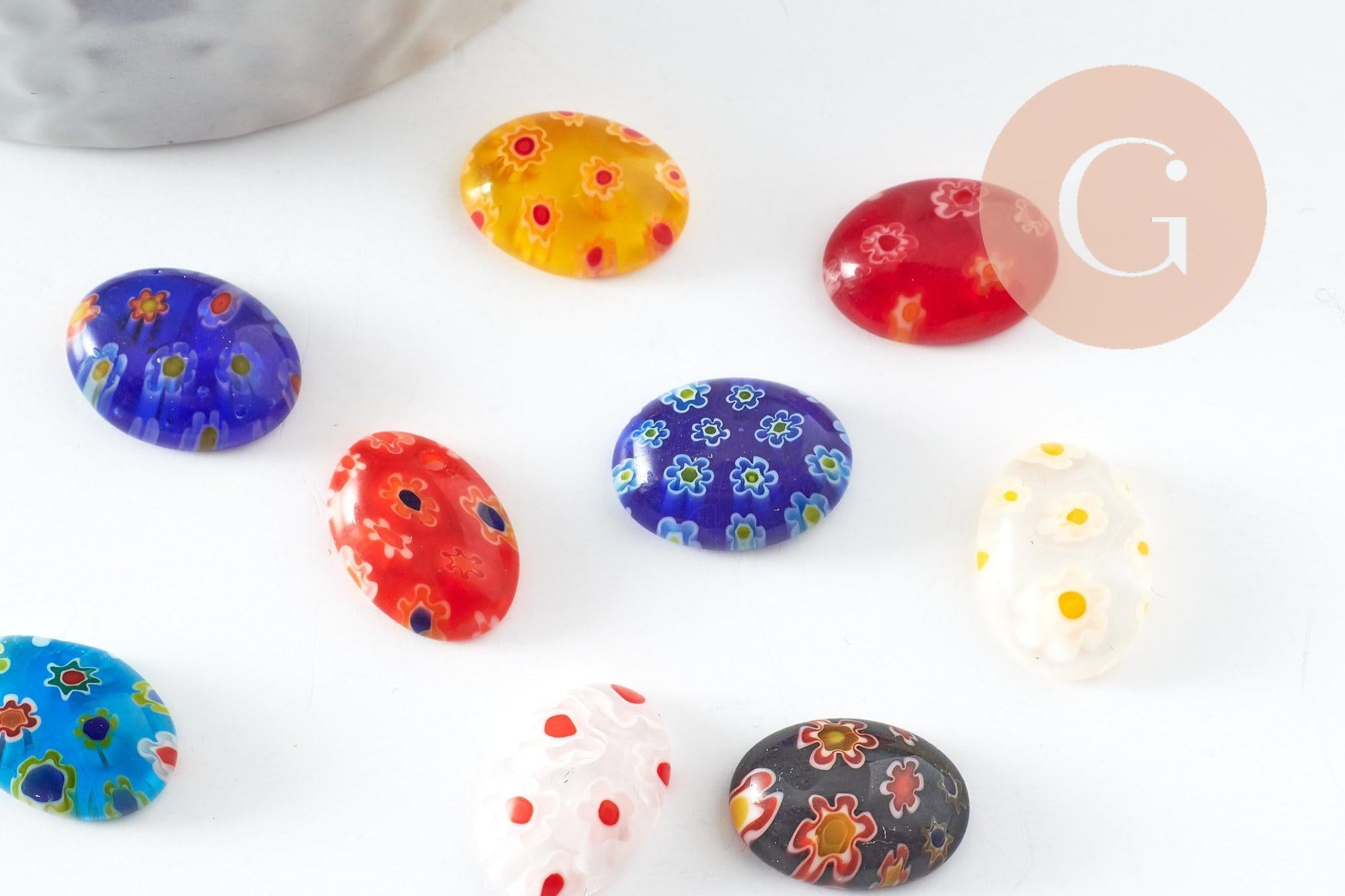 Craquez pour ces cabochons en verre travaillé à la main millefiori, aux couleurs variées de forme ovale.
