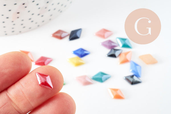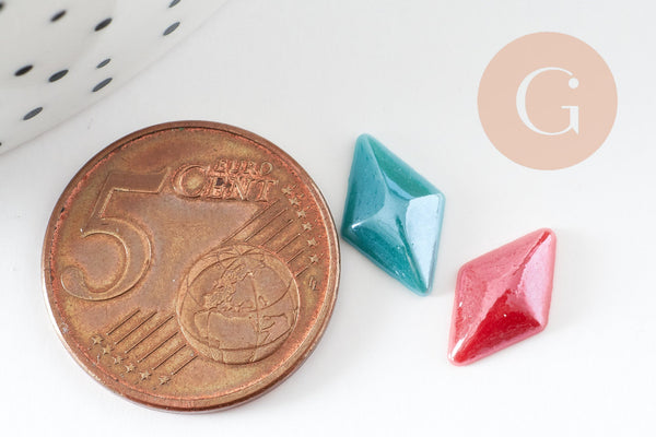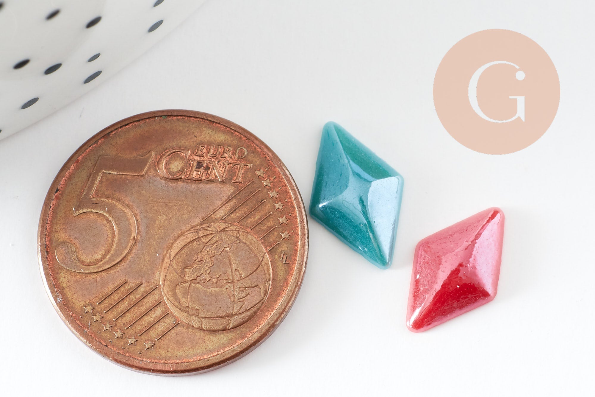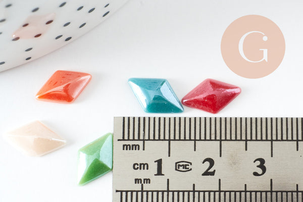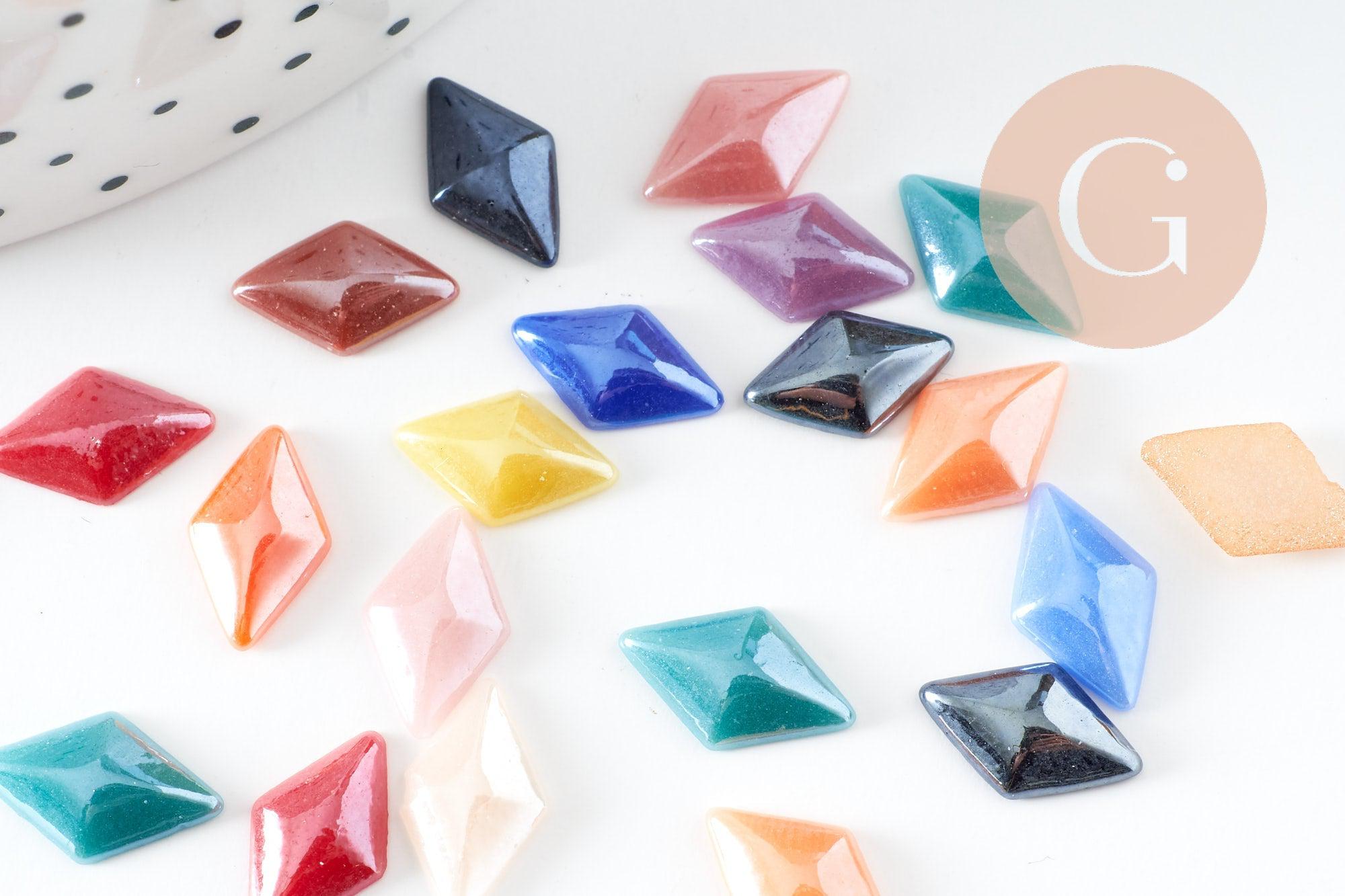 Craquez pour ces cabochons en verre irisé, dans des couleurs variées, de forme de losange