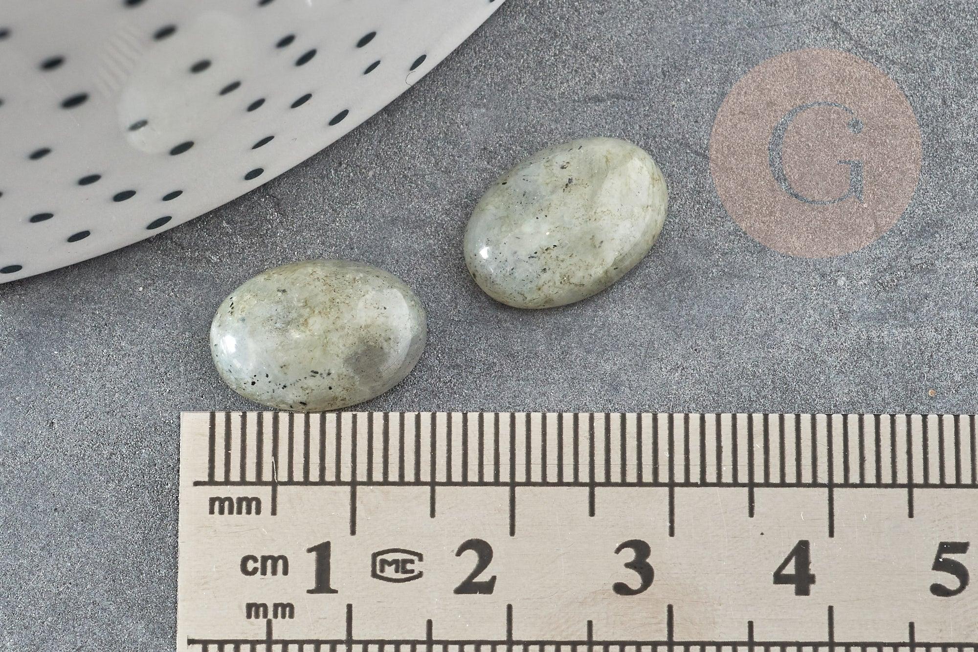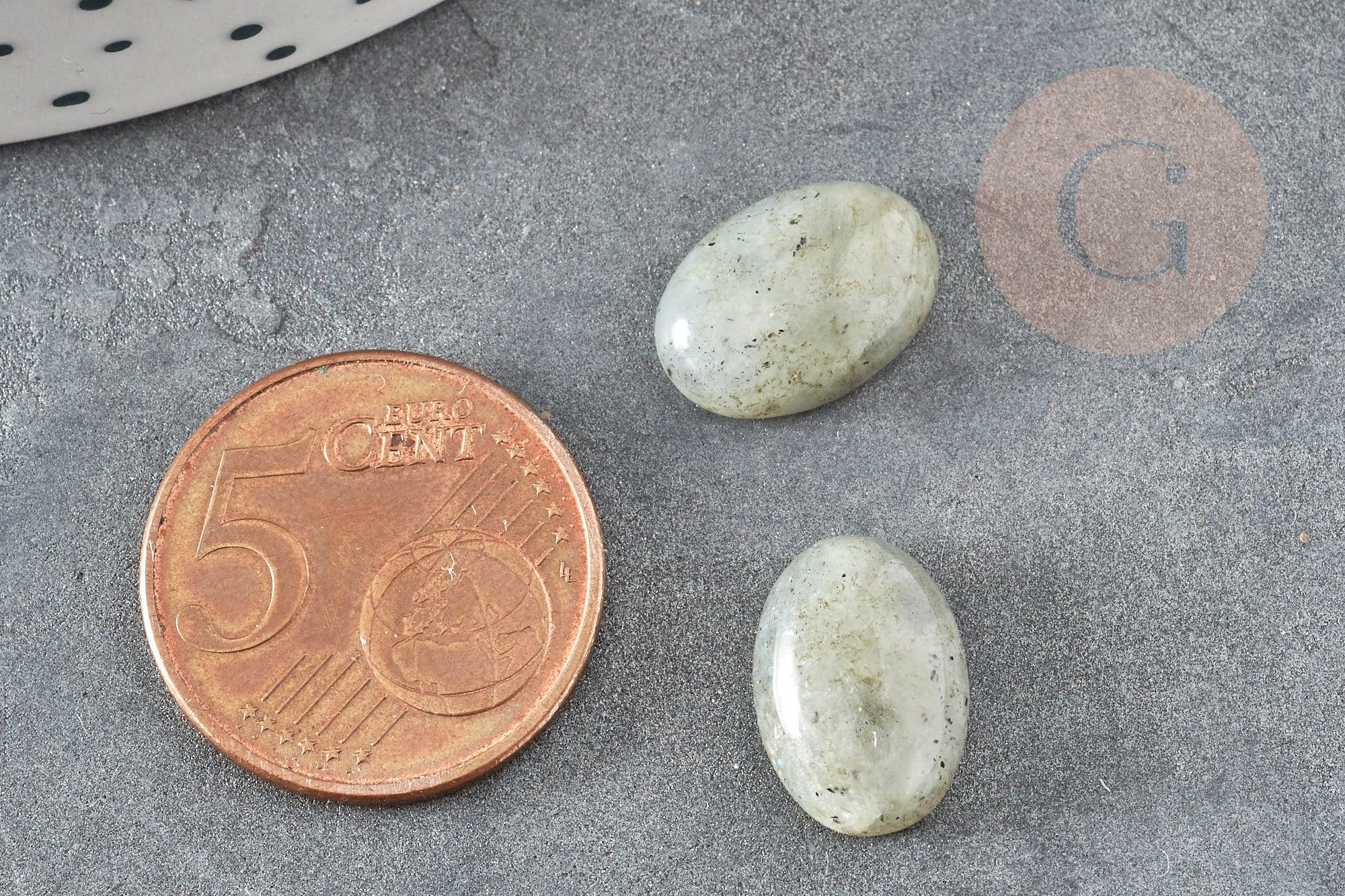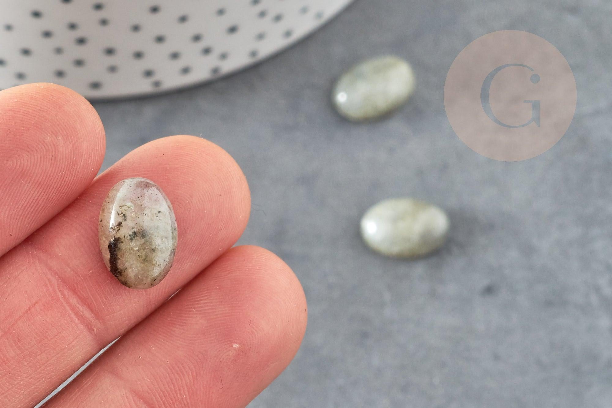 Ce cabochon ovale en labradorite naturelle de 10x14mm est une pierre fascinante aux reflets irisés allant du bleu au vert, avec parfois des nuances dorées.