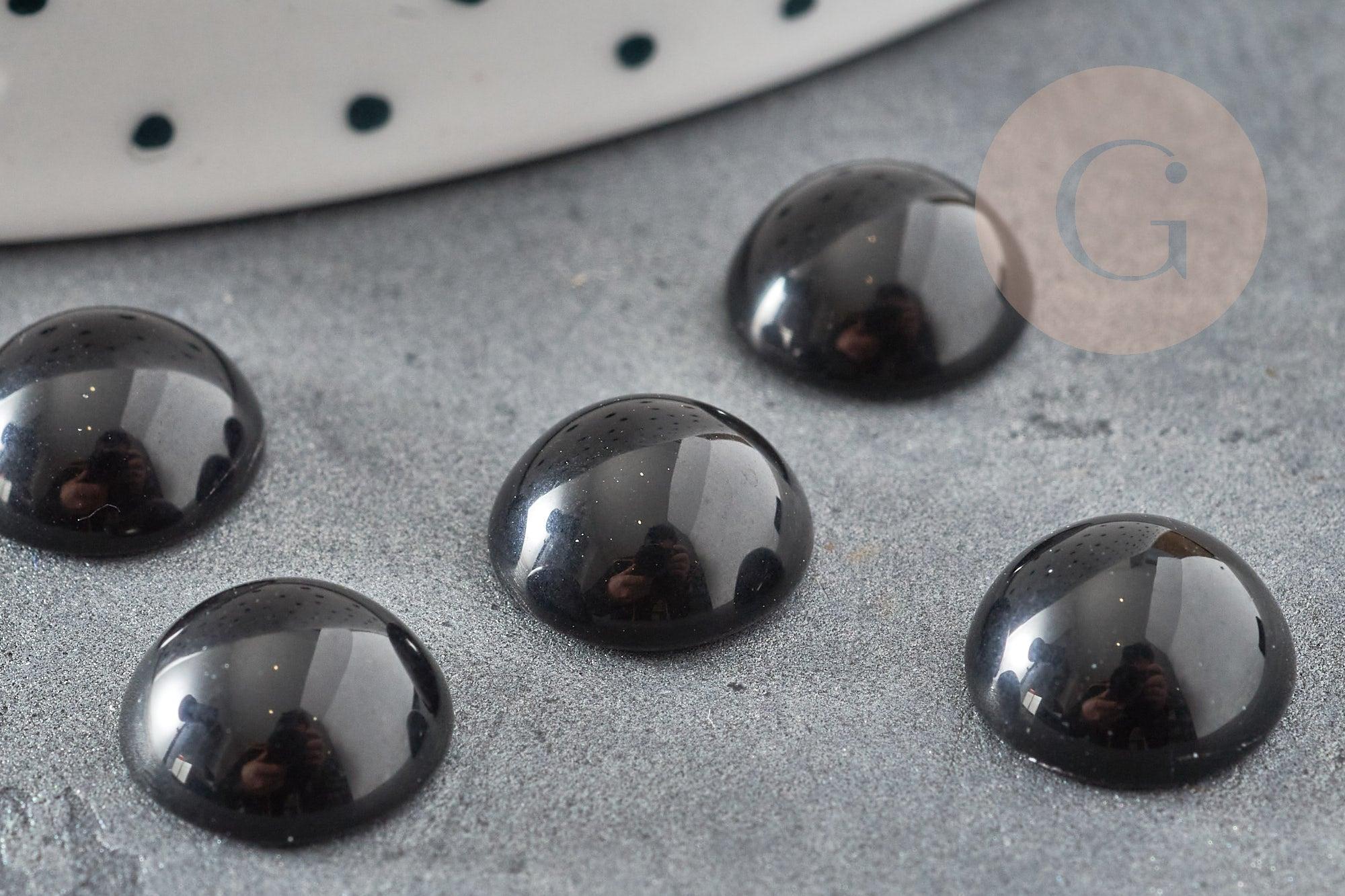 Craquez pour ce cabochon de 10mm en agate noir naturelle et polie, teintée.