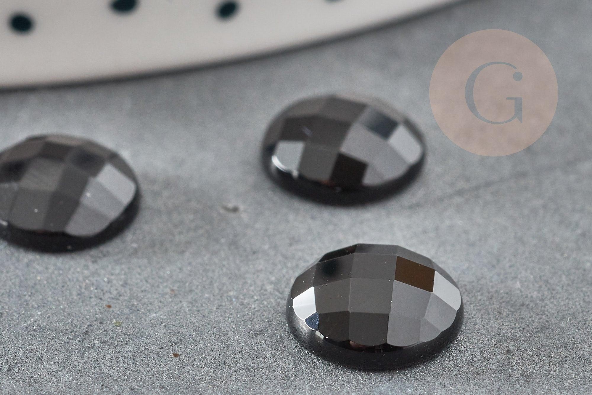 Cabochon rond agate noire facetté, cabochon rond,agate naturelle, cabochon pierre, pierre naturelle,10mm, pierre naturelle