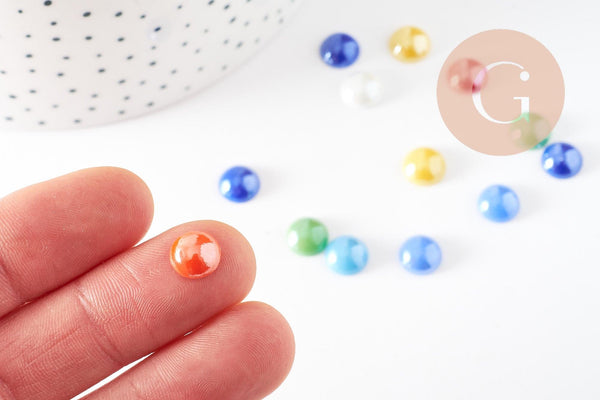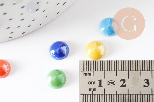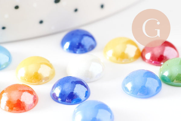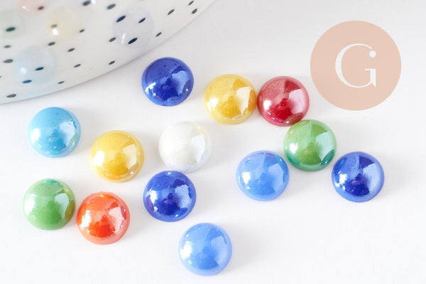 Ces cabochons ronds dôme vert irisé aux reflets multicolores sont parfaits pour sublimer vos bijoux fantaisie. À coller sur un support de bague, bracelet, manchette ou boucles d’oreilles pour des créations uniques et brillantes.