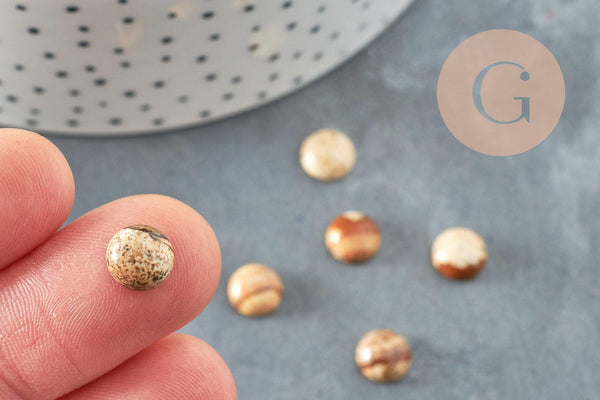Cabochon rond jaspe paysage,bijou pierre, cabochon rond,jaspe naturel, jaspe marron,cabochon 8mm, pierre naturelle