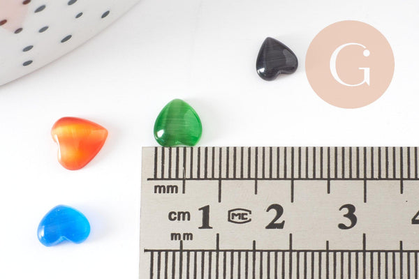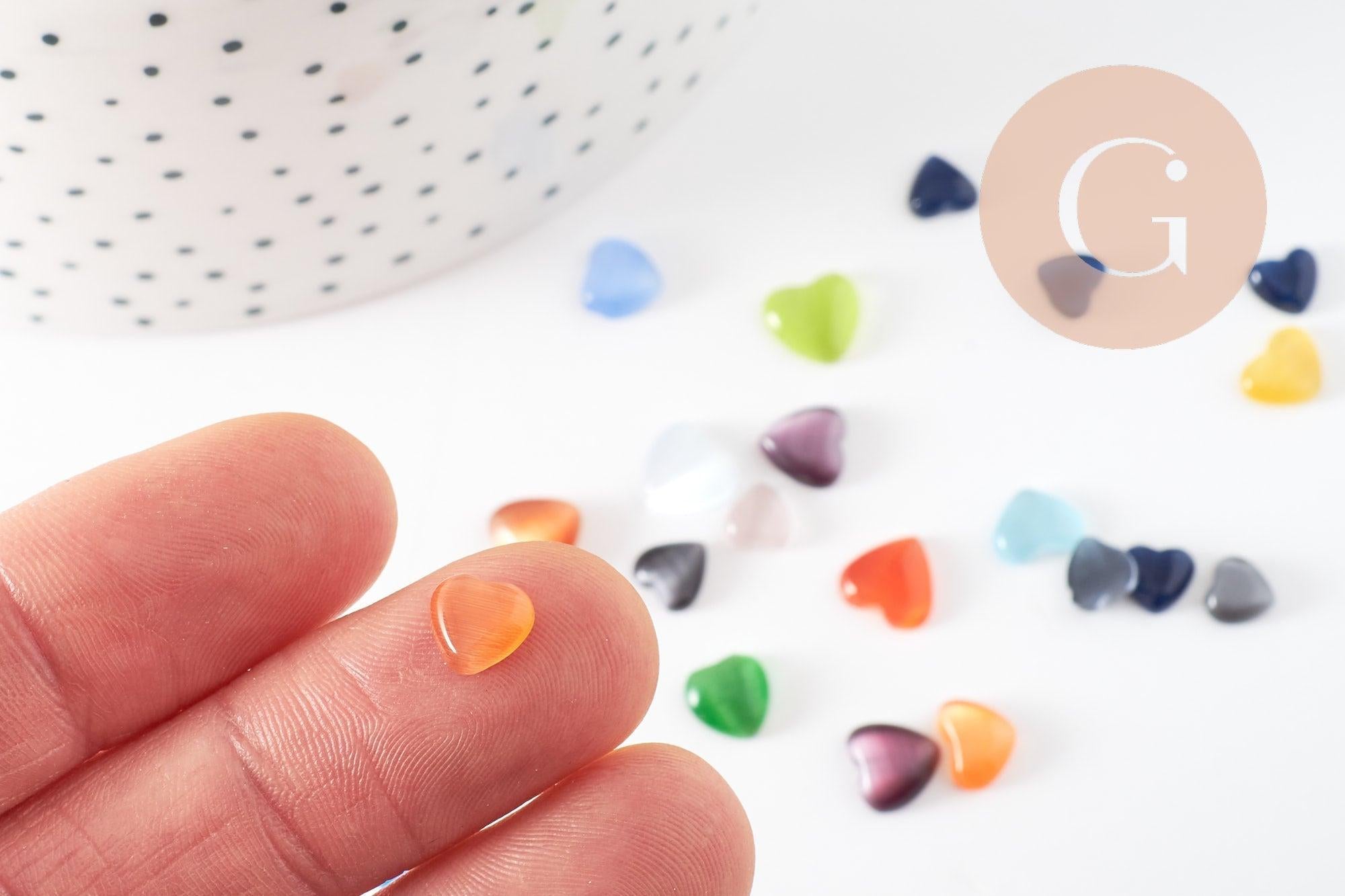 Cabochon verre coeur, fournitures créatives,cabochon multicolore, cabochon cœur,,création bijoux, taille 2 à 10mm,les 20, 50 ou 100