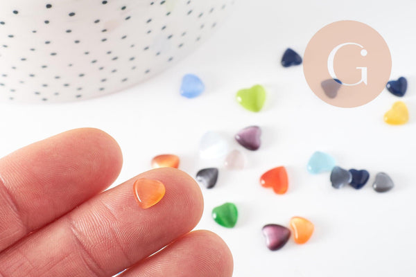 Craquez pour ces cabochons en verre oeil de chat, aux couleurs variés en forme de cœur.