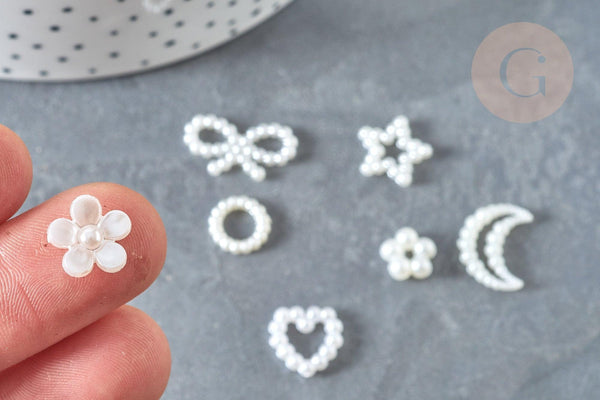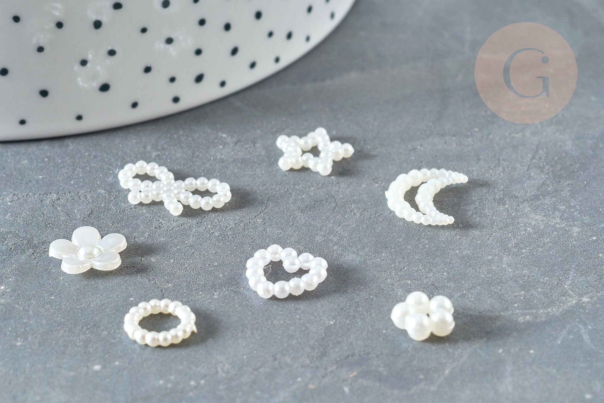 Réalisez de nombreux bijoux fantaisie DIY avec ces cabochons en perle acrylique blancs nacrés. Idéales et souvent utilisées pour fabriquer des bijoux, dans le scrapbooking et dans la fabrication de bijoux en résine époxy.