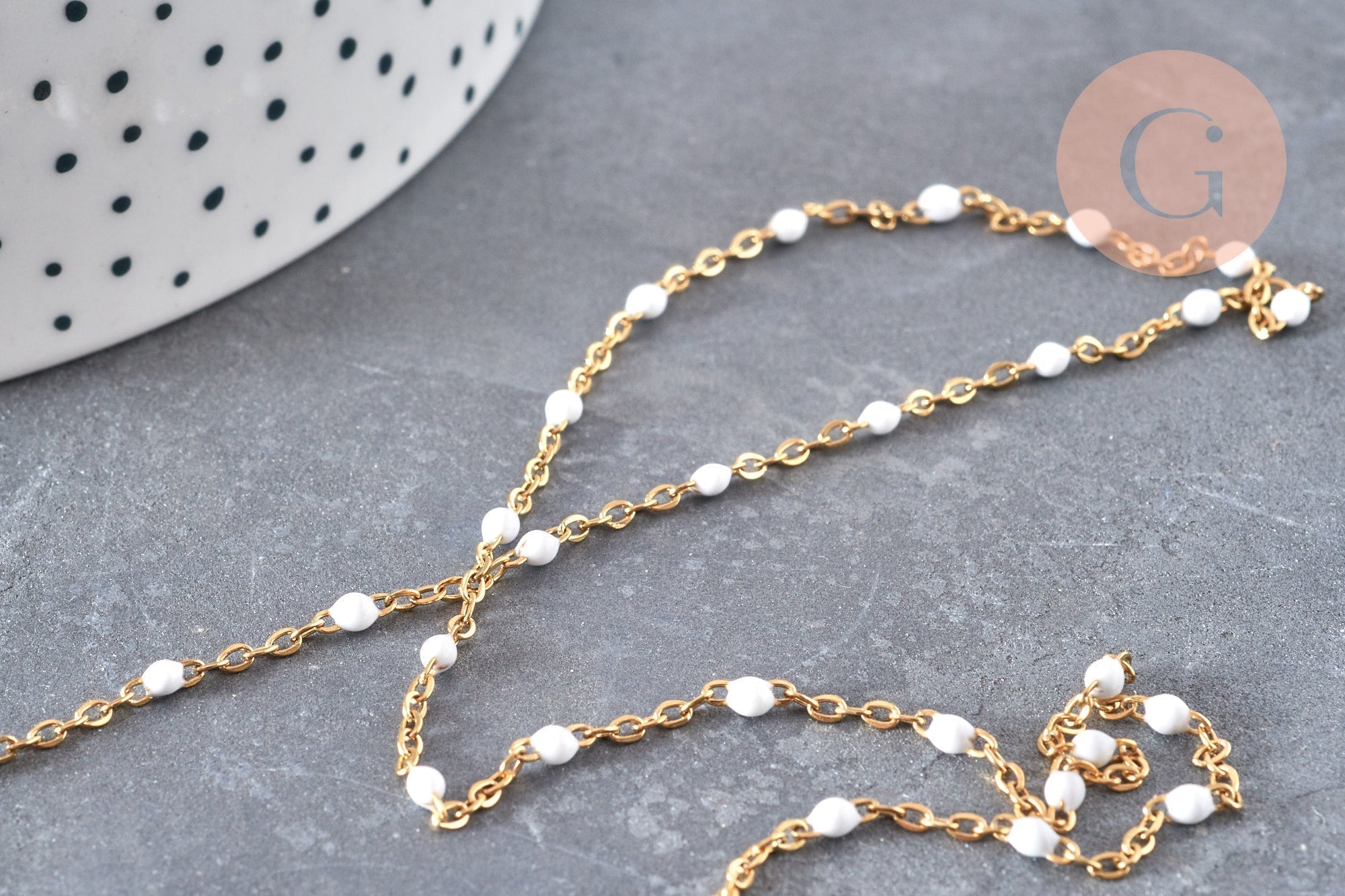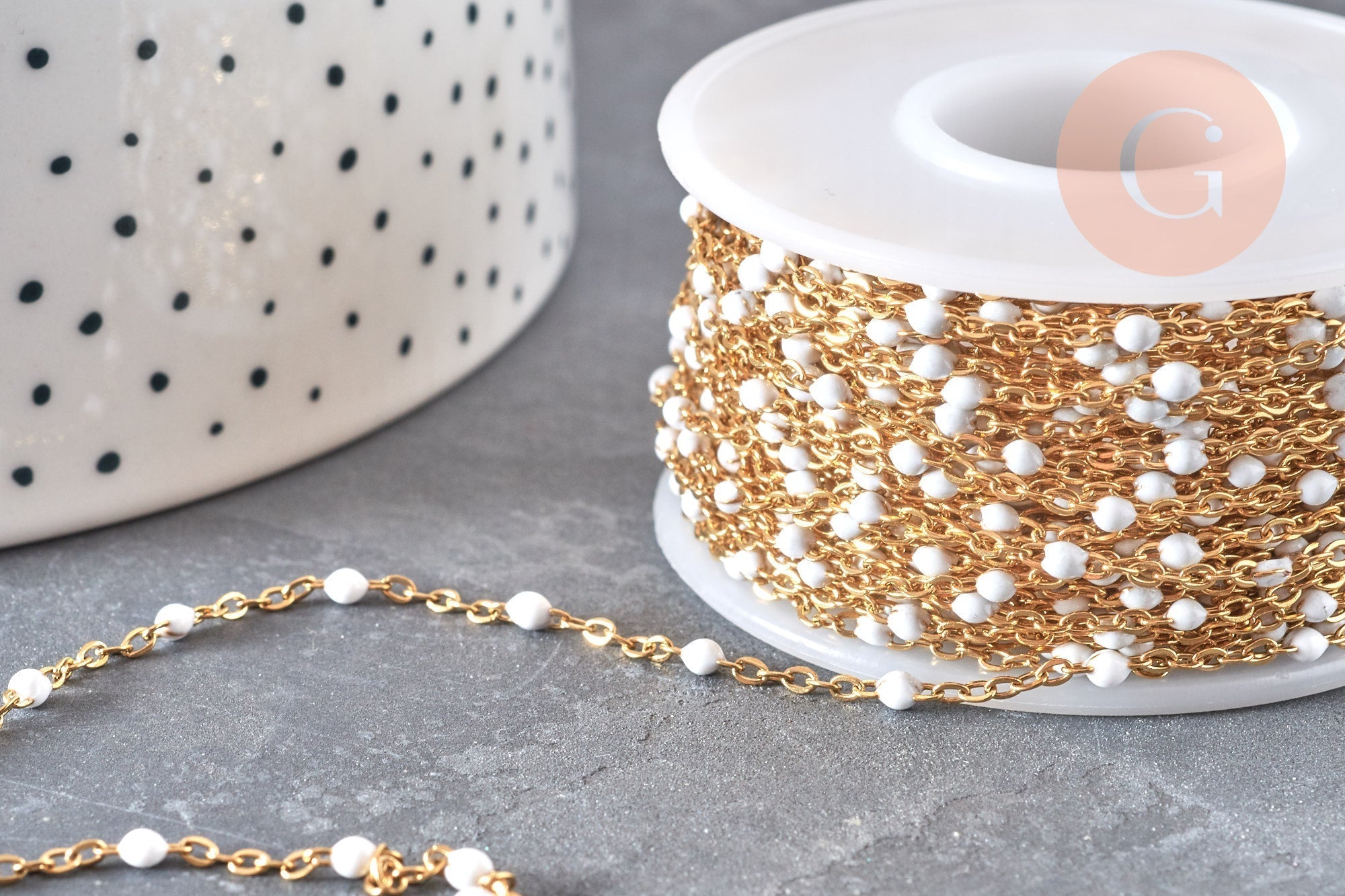 Une chaîne fantaisie en acier inoxydable décorée de résine blanche pour créer toutes vos envies de bijoux DIY Comment utiliser cette chaîne ?Les possibilités sont multiples et nous vous proposons ici quelques idées DIY faciles à réaliser : Ajoutez un...