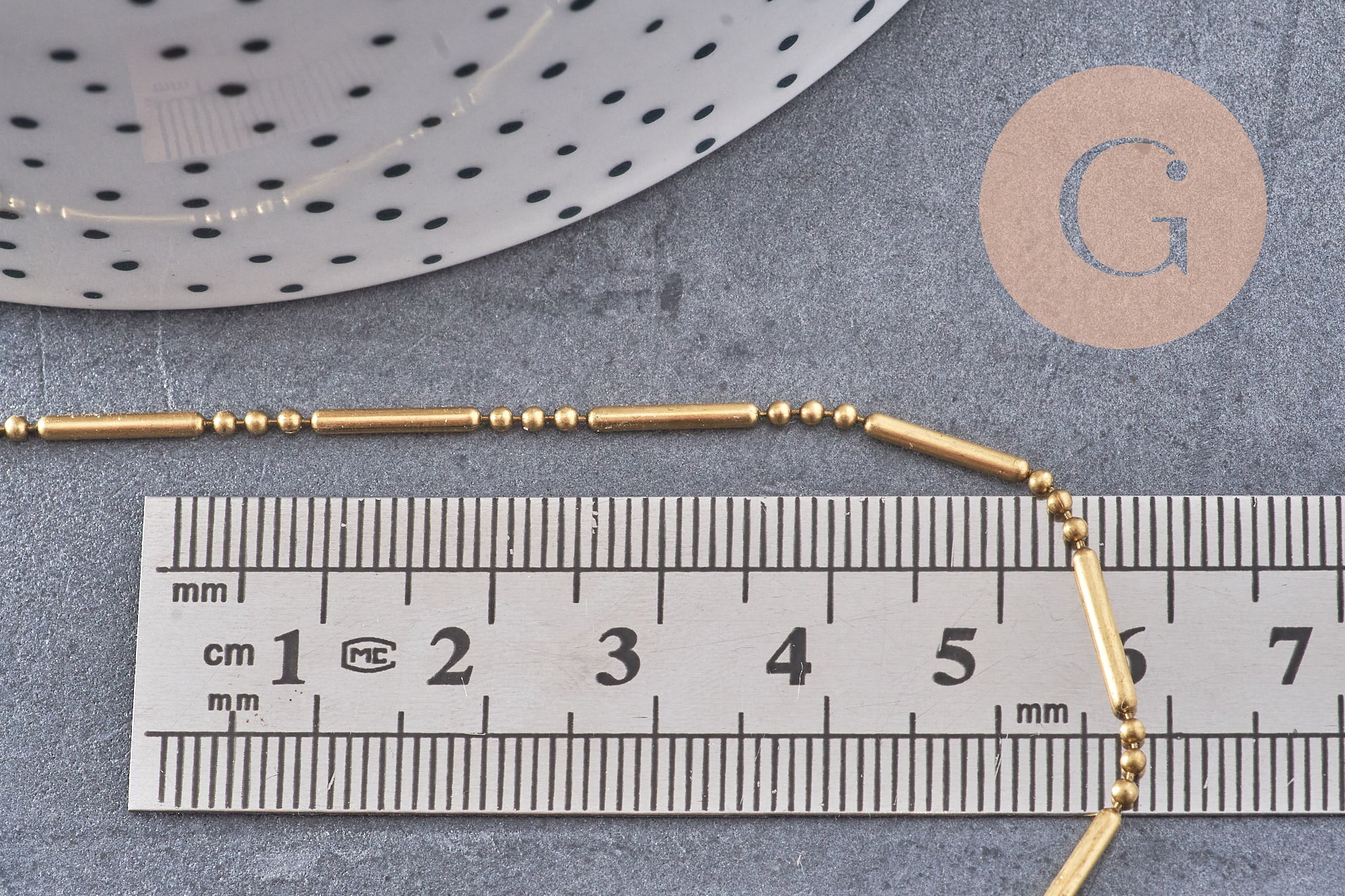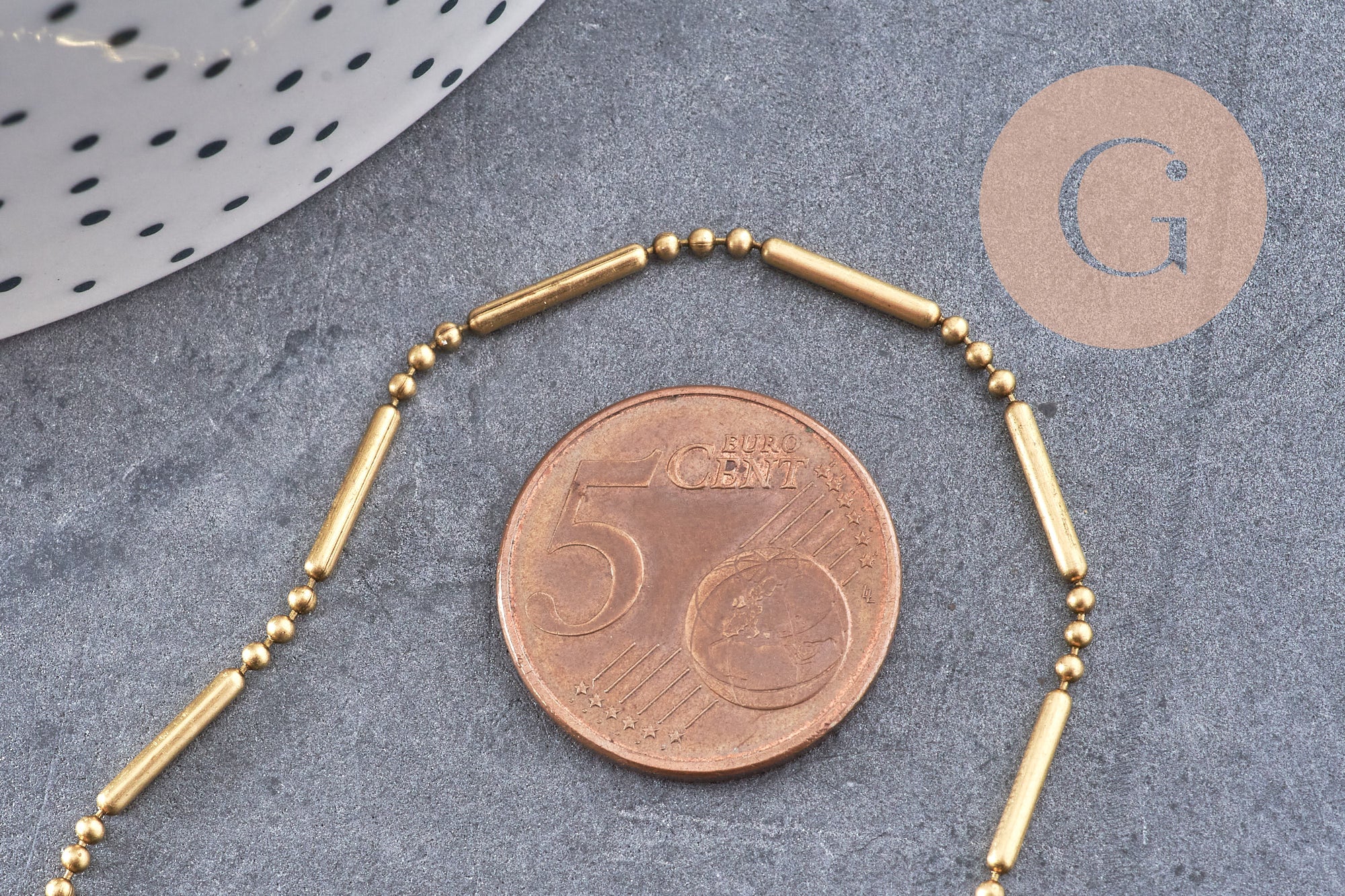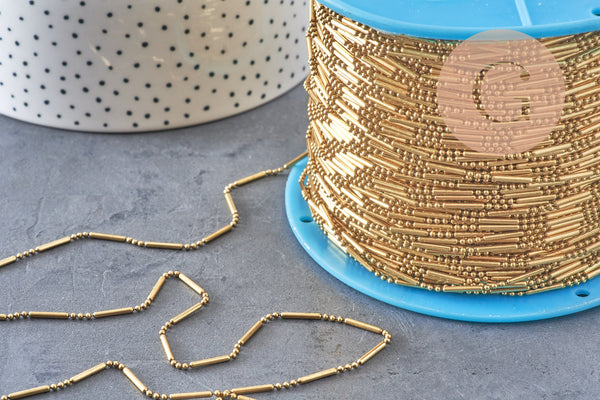 Chaine boule bambou laiton brut, fourniture créative, chaine bijou, création bijoux,chaine boule,sans nickel, grossiste,1.5mm, 5 metres,