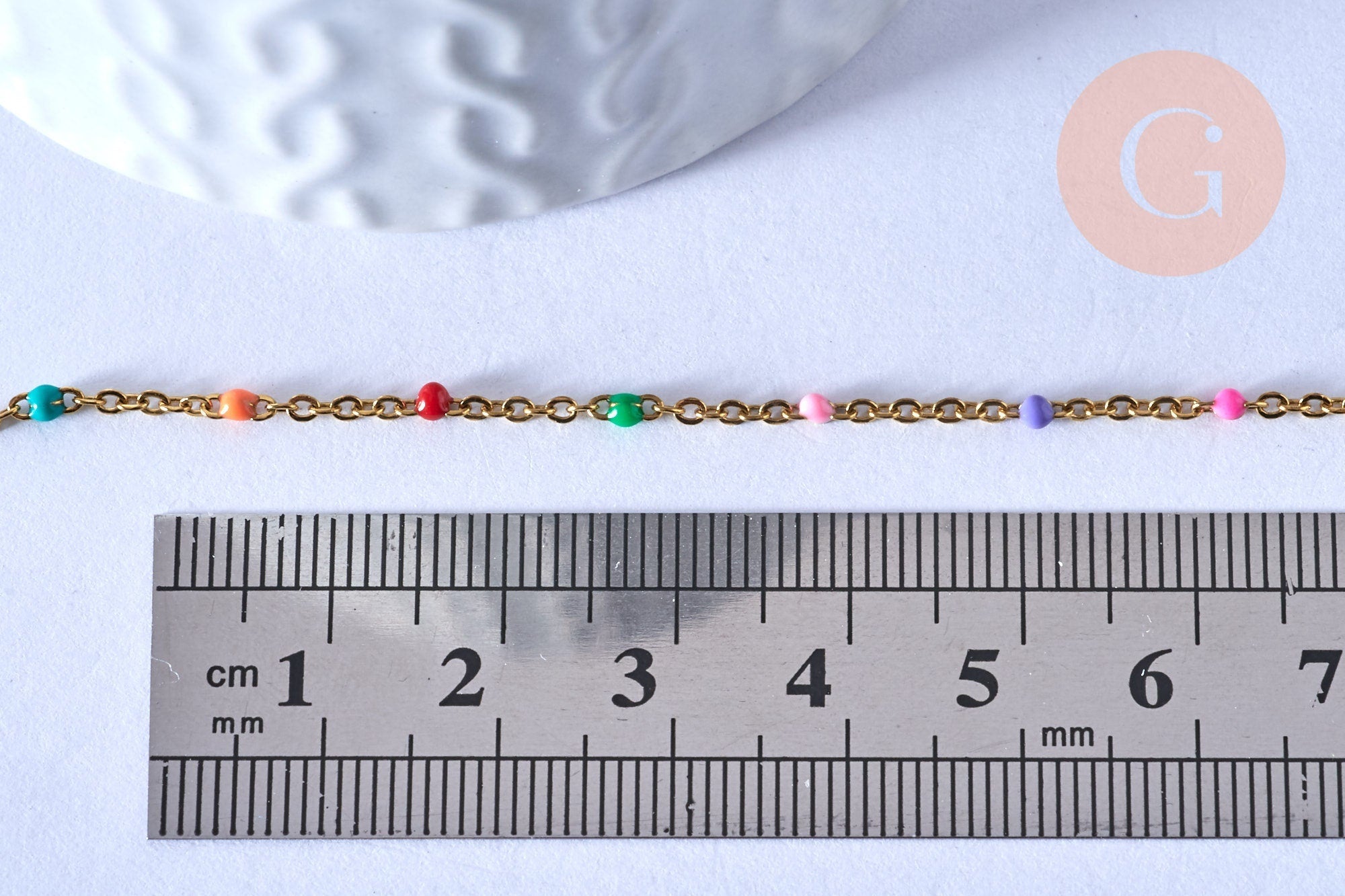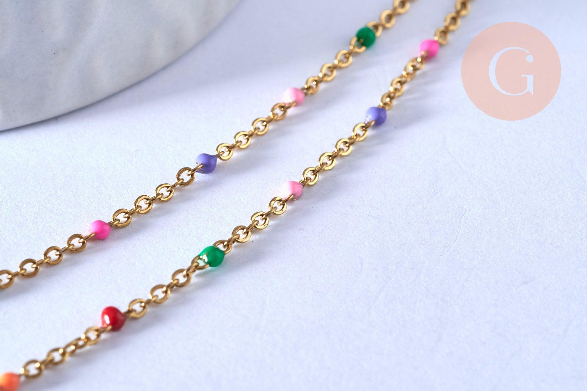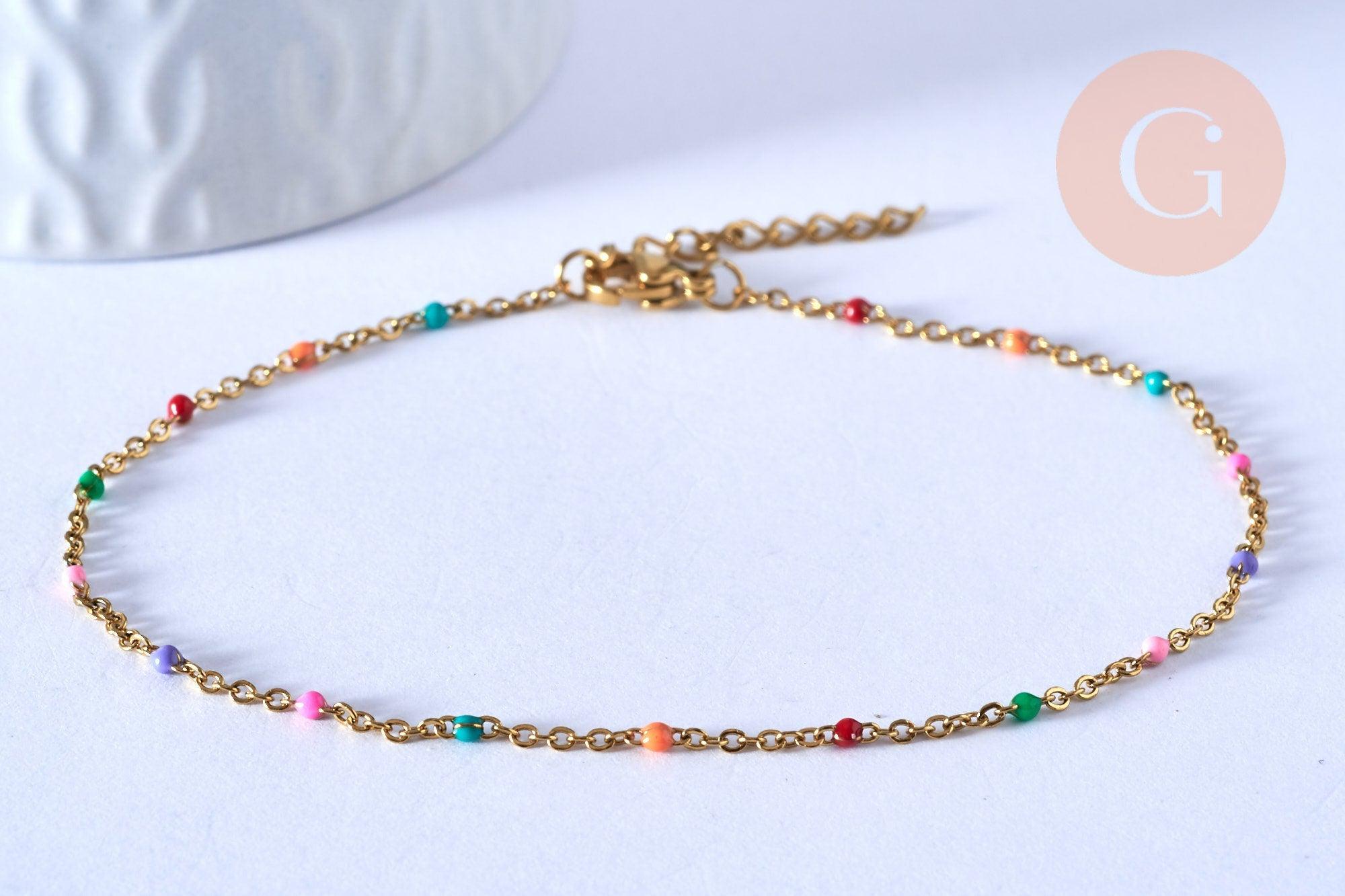 EP-chaine de cheville acier doré 14k résine multicolore chaine doree 1.5-2mm/23cm, x1 (G3662)