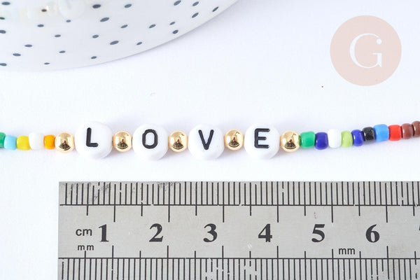 Chaine de lunettes ou masques perles verre et acrylique laiton doré 70,5cm LOVE chaine lunettes fantaisie, x1 (G7658)