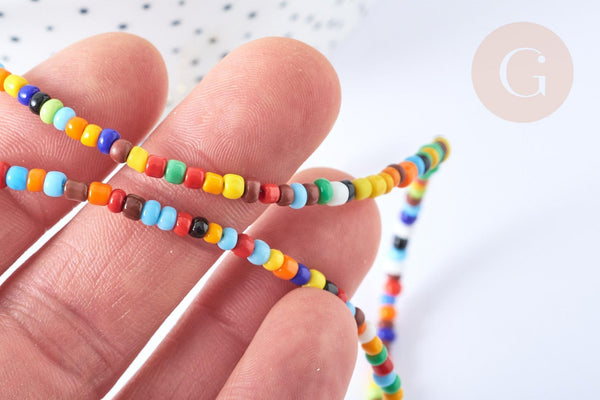 Celle-ci est composée, également, de perles de rocaille en verre, de couleurs pop et vives ! Des embouts en caoutchouc pour faciliter l'attache de votre accessoire.