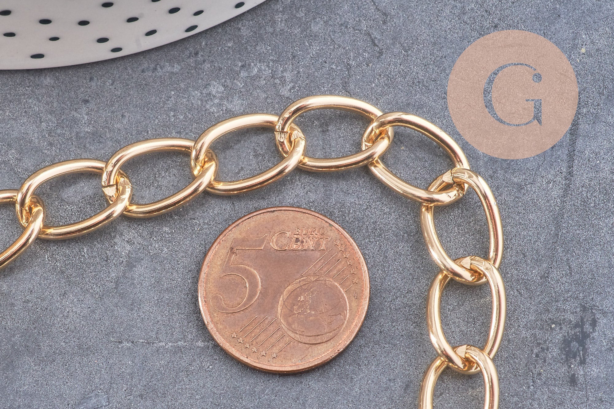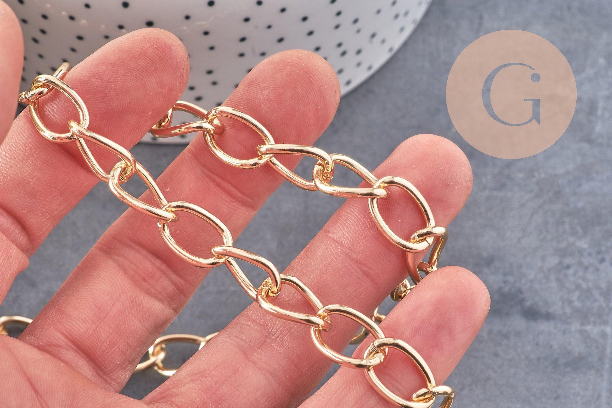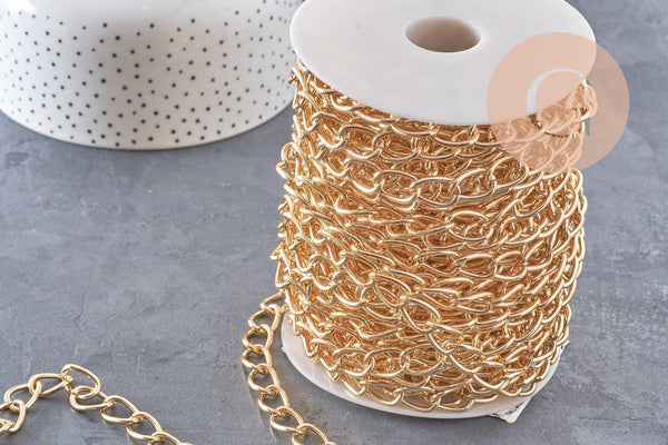 Chaine doré grosse maille aluminium doré,chaine collier,création bijoux,chaine large,15x10x2mm,vendue au mètre