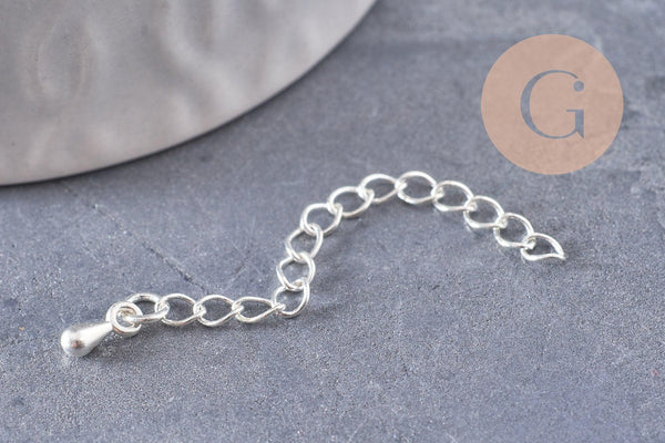 Chaine extension laiton argenté,fournitures créatives, laiton argenté,sans nickel,sans cadmium,création bijoux,40-58mm,lot de 10