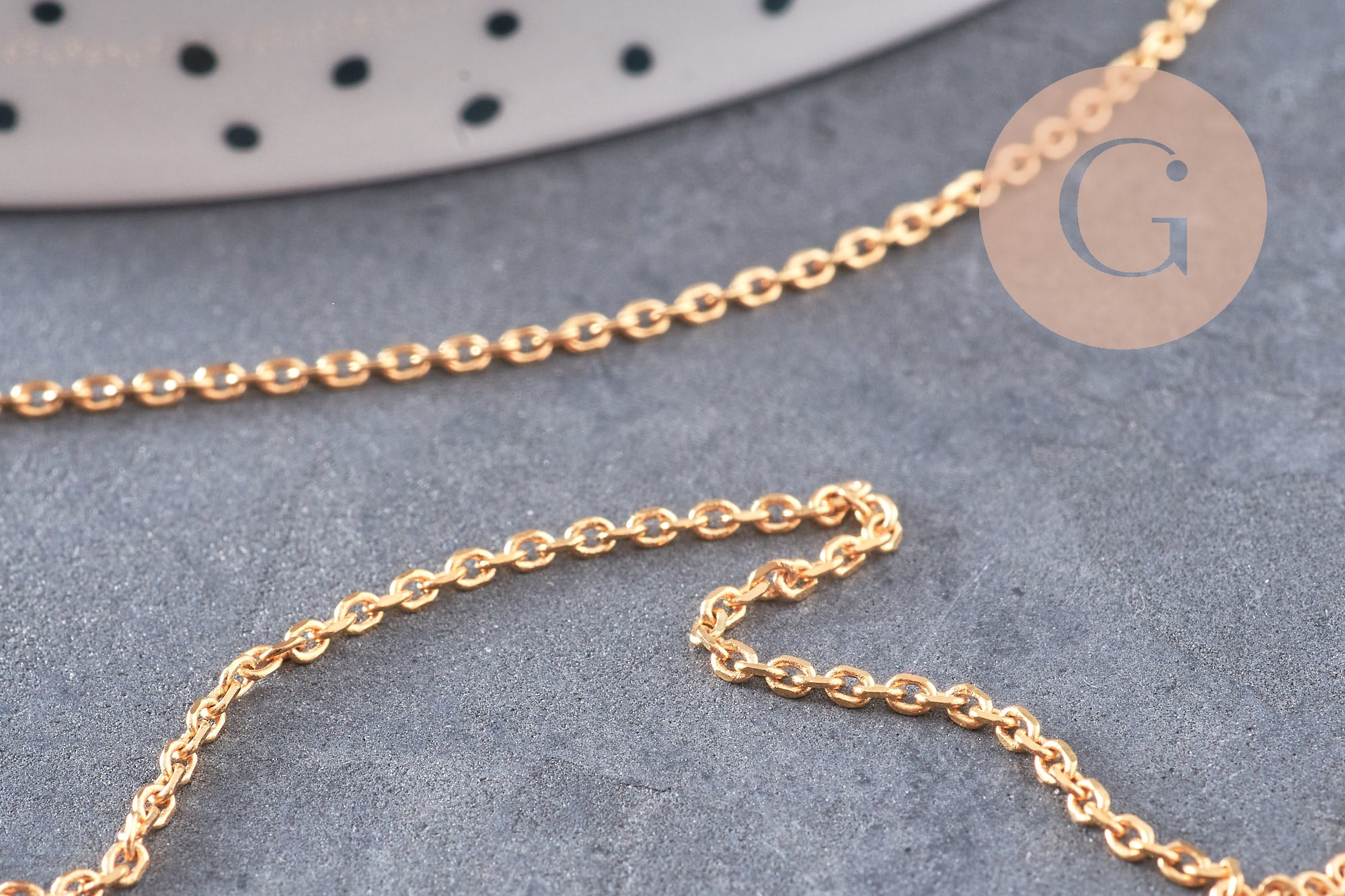 Chaine fine Dorée forçat 16K, fourniture créative, chaine bijou, création bijoux,chaine diamantée,chaine dorée,1.8 mm, x1 mètre (G0031)