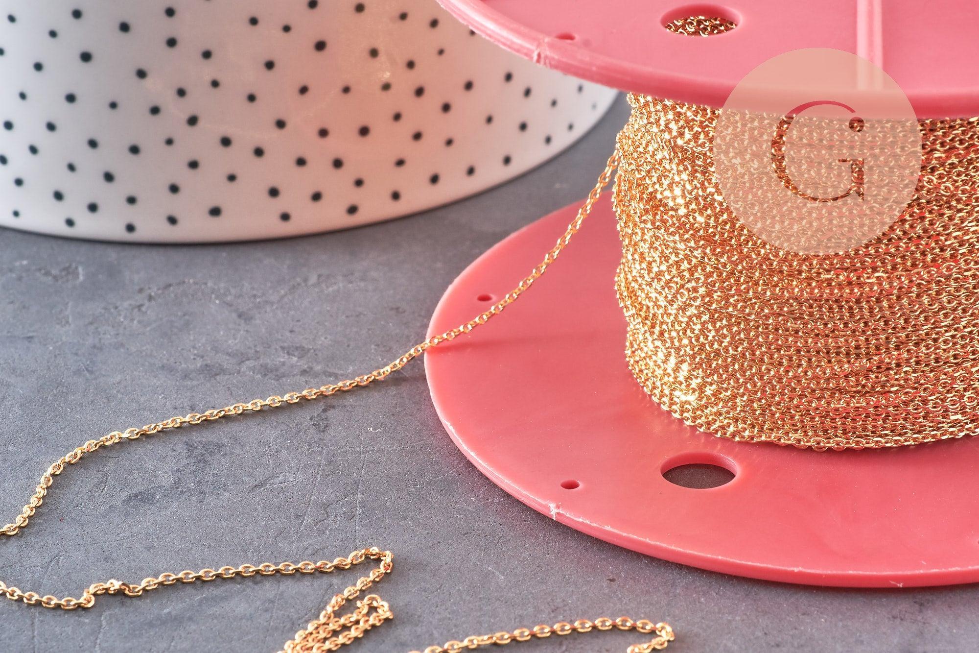 our exécuter rapidement vos bijoux, Gingerily vous propose 1 mètre de cette chaine fine dorée à l'or 16 carats épaisseur 2.5 microns