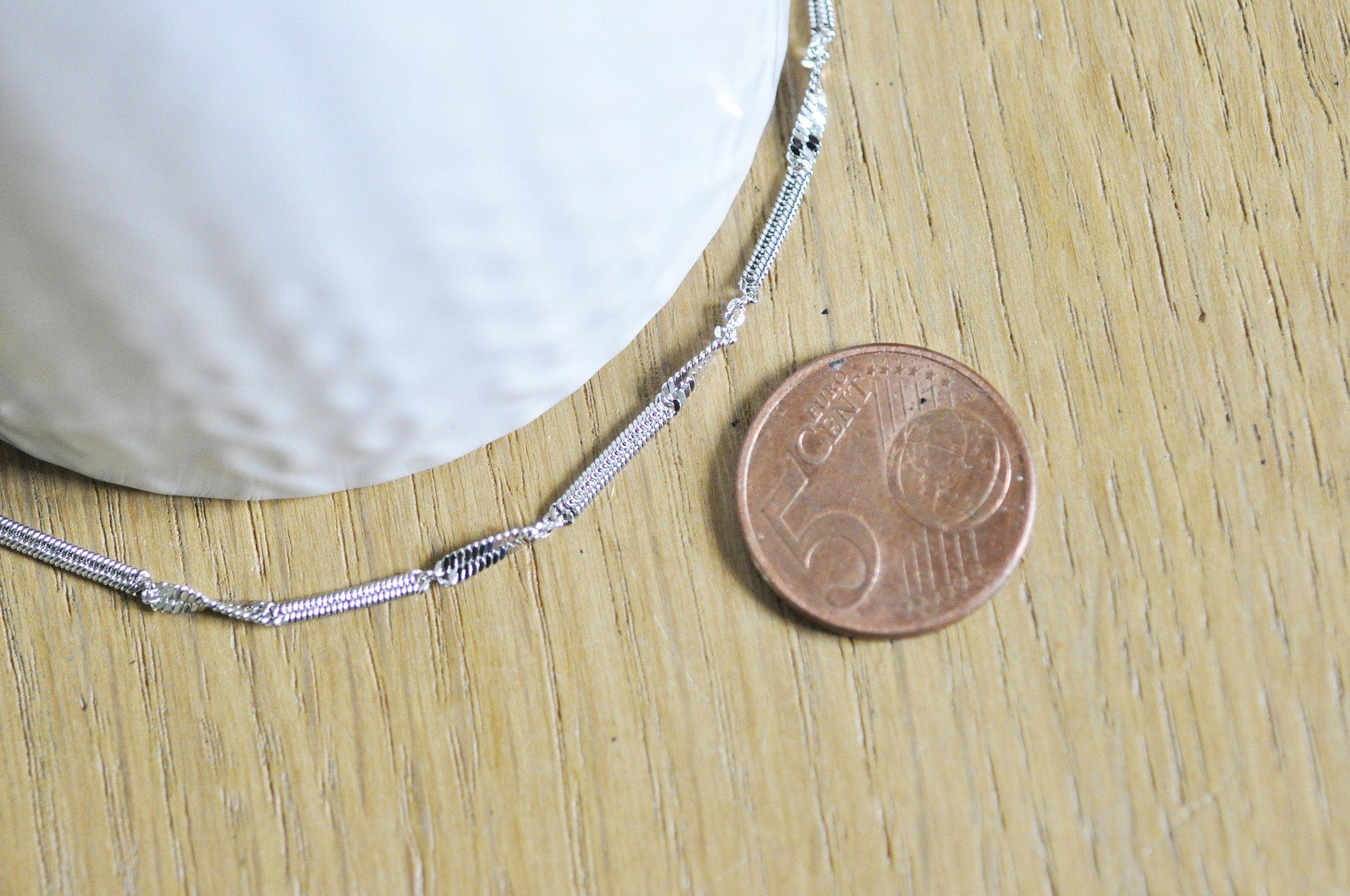 Une chaine en cuivre plaquée or blanc (rhodium) vendue au mètre