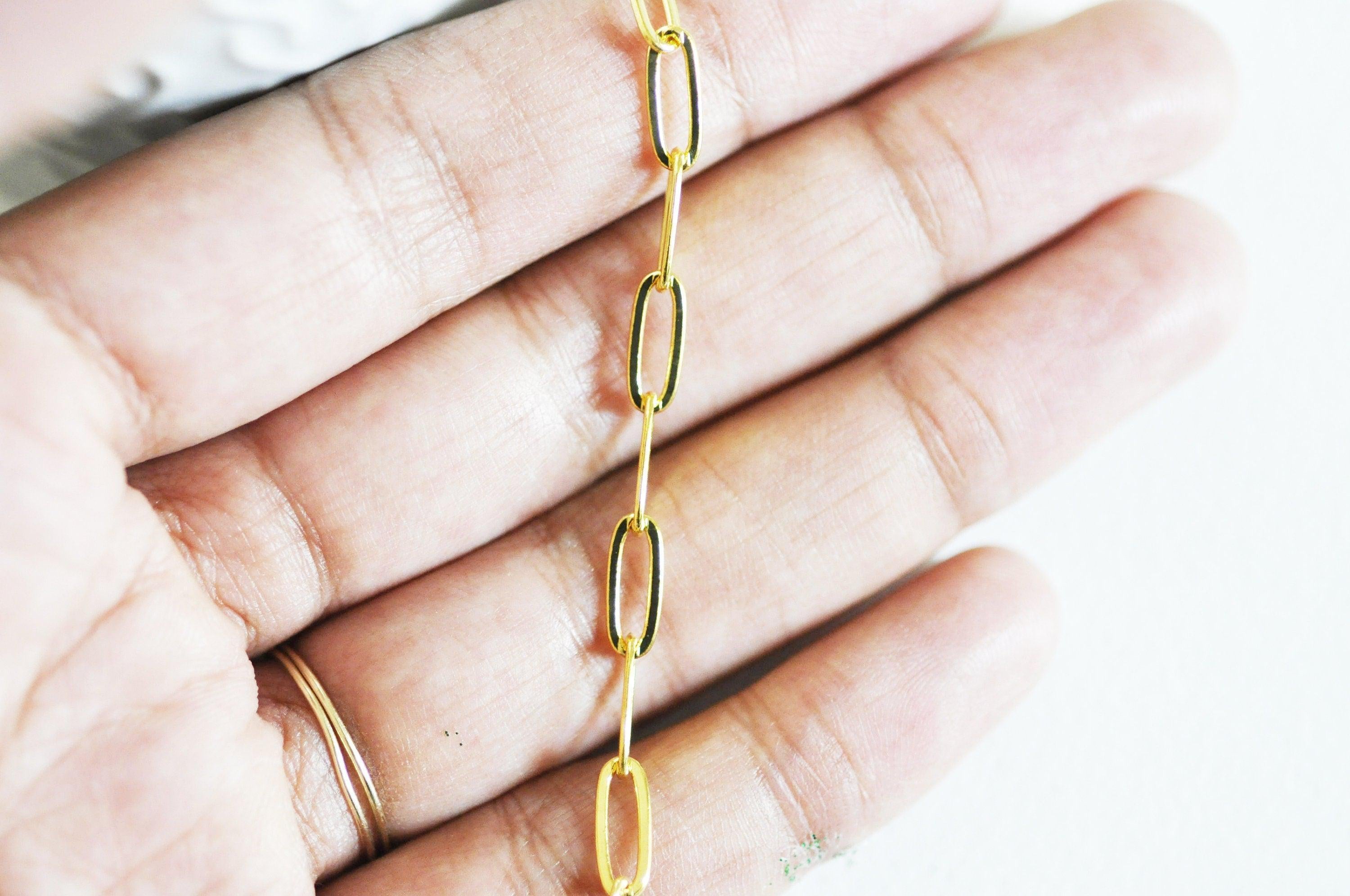 Pour exécuter rapidement vos bijoux, Gingerily vous propose cette chaine rectangle dorée en laiton doré.